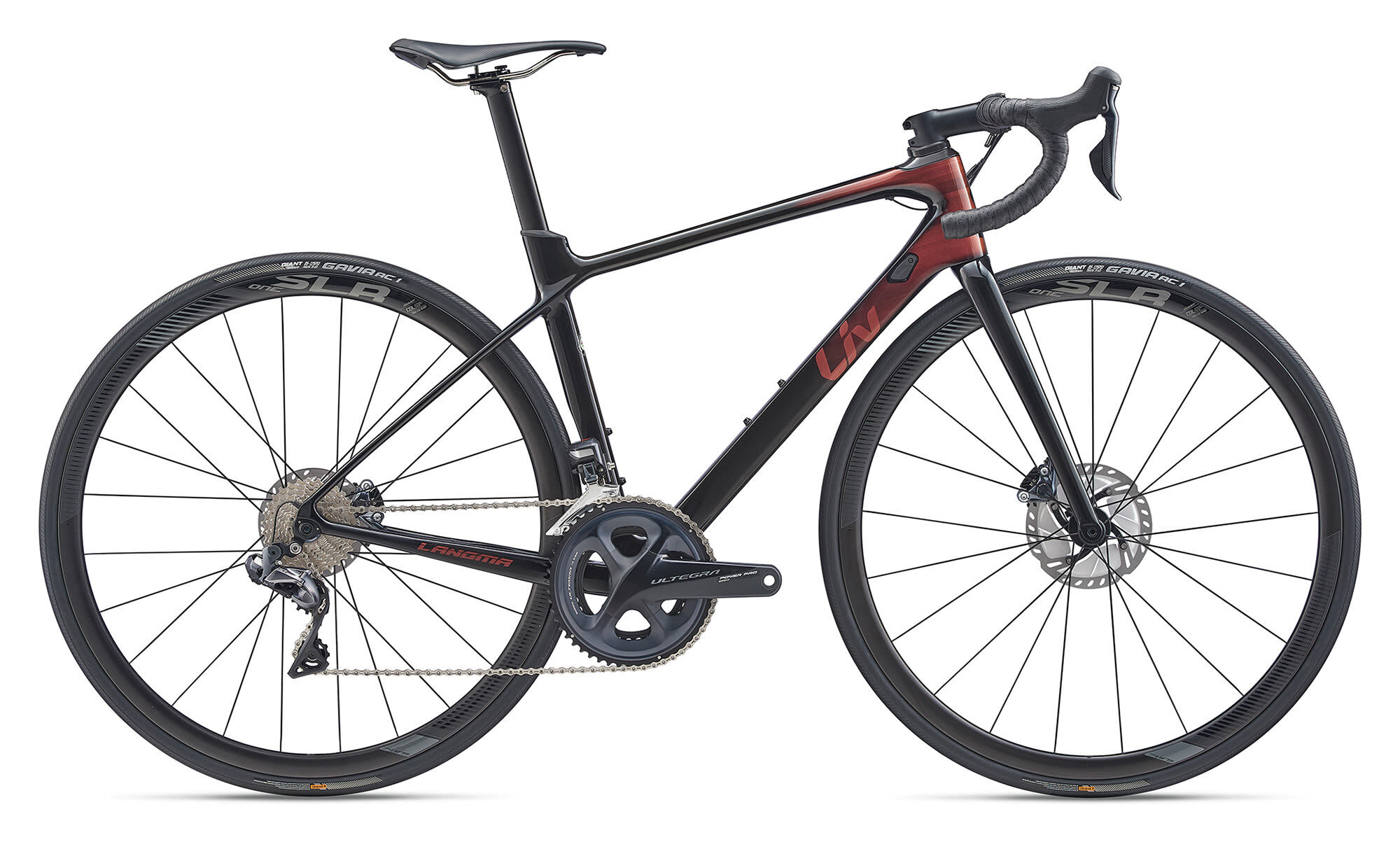 Style | This feather light racing bike delivers the speed and strength needed for any climb, race or ride. Langma Advanced Pro Disc is handcrafted for the toughest climbers, aspiring racers, seasoned competitors and passionate cyclists alike, and is the secret weapon for making the break stick.Advanced Composite Technology - Liv's High-Performance Grade raw carbon material is used to produce this frameset in our own composite factory. Using state-of-the-art materials and manufacturing techniques, Liv's Advanced-Grade Composite frames are designed to offer light weight and stiffness with optimal compliance. Compact Road Design - When introduced by Giant in 1990s, Compact Road revolutionized the look and feel of high-performance road bikes forever. A downward sloping toptube (from the headtube to the seattube) creates smaller front and rear triangles for a lighter, stiffer bike. It also makes it easier for riders of all sizes to have a perfect fit. PowerCore - A massively oversized bottom-bracket/chainstay area features a fully integrated, 86-millimeter wide bottom-bracket design (92-millimeterwide for off-road bikes). Asymmetric chainstays provide additional stiffness on the driveside and stability on the non-driveside. OverDrive 2 - The most advanced steerer tube technology in today's Liv and Giant bikes. Designed to offer unprecedented front-end steering performance, the system's oversized headset bearings (1 1/2" lower, 1 1/4" upper) and tapered steerer tube work in harmony to provide supreme steering stiffness. RideSense - Liv and Giant's chainstay-integrated, wireless data transmitter. The removable transmitter sends wheel speed and cadence information directly to any ANT+ compatible computer. Power Pro - Tracking your power output and training data has never been easier. The all-new Power Pro system delivers accurate information with an integrated system that's precise, reliable and simple to set up. The most effective training is smart training, so start training with power. Specifications:Sizes XS, S, MColours Gloss Carbon Smoke / Chameleon Mars ('Carbon 'Smoke' paint finish = semiopaque coating for subtler carbon detail) Frame Advanced-Grade Composite, disc Fork Advanced-Grade Composite, full-composite OverDrive 2 steerer, disc Shock Handlebar Giant Contact SL Stem Giant Contact SL Seatpost Giant Variant, composite Saddle Liv Contact SL (forward) Pedals Shifters Shimano Ultegra Di2 Front Derailleur Shimano Ultegra Di2 Rear Derailleur Shimano Ultegra Di2 Brakes Shimano Ultegra hydraulic disc Brake Levers Shimano Ultegra hydraulic Cassette Shimano Ultegra, 11x30 Chain KMC X11SL-1 Crankset Shimano Ultegra, 36/52,Giant Power Pro power meter Bottom Bracket Shimano, press fit Rims Giant SLR 1 Disc 30 Composite WheelSystem Hubs Giant SLR 1 Disc 30 WheelSystem Spokes Giant SLR 1 Disc 30 WheelSystem Tyres Giant Gavia Course AC 1, 700x25, tubeless Extras RideSense Bluetooth |