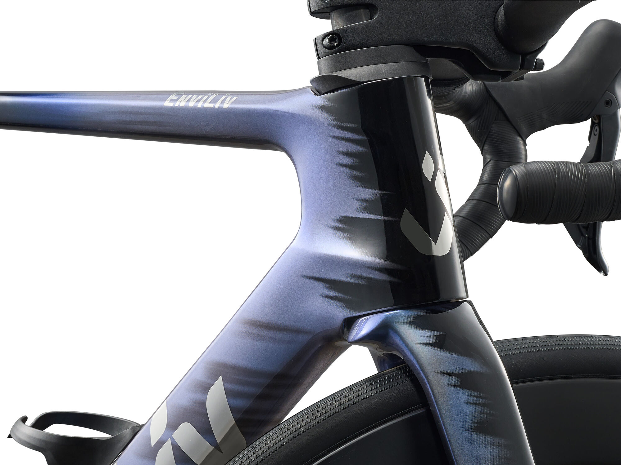 Style | From the stage race breakaway to the final criterium lap, the EnviLiv is made to be out front. We've designed our signature sprinter for optimized aerodynamic performance, greater stiffness-to-weight advantage, and maximum trophies.Advanced Composite Technology - Liv's High-Performance Grade raw carbon material is used to produce this frameset in our own composite factory. Using state-of-the-art materials and manufacturing techniques, Liv's Advanced-Grade Composite frames are designed to offer light weight and stiffness with optimal compliance. AeroSystem Shaping Technology - Tubing shapes engineered using computational fluid dynamics (CFD) and wind-tunnel data to optimize each tube shape for superior aerodynamic performance. OverDrive Aero - Found inside the head tube of the all-new EnviLiv range, the D-shaped fork steerer tube and corresponding spacers provide an extremely aerodynamic, easier to service system of internally routed brake and derailleur cables. Vector Seatpost - This full-composite, lightweight and highly aerodynamic seatpost is engineered specifically for performance road riding. Tubeless System - Engineered with proprietary Dynamic Balanced Lacing technology, this tubeless ready composite WheelSystem delivers superior efficiency, pinpoint control and comfort. PowerCore - A massively oversized bottom-bracket/chainstay area features a fully integrated, 86-millimeter wide bottom-bracket design (92-millimeterwide for off-road bikes). Asymmetric chainstays provide additional stiffness on the driveside and stability on the non-driveside. Specifications:Sizes XXS, XS, S, M, LColours Thundercloud/Chrome Frame Advanced-grade composite, 12x142mm thru-axle, disc Fork Advanced-grade composite, full-composite OverDrive Aero steerer, 12x100mm, disc Shock Handlebar Liv Contact SL Aero, 31.8mm, XXS: 360mm, XS: 360mm, S: 380mm, M: 400mm, L: 420mm Grips Liv Stratus Elite 2.0 Stem Giant Contact SL Aero, XXS:80mm, XS:80mm, S:90mm, M:100mm, L:110mm Seatpost Giant Vector, composite, XXS: 350mm, XS: 350mm, S: 350mm, M: 350mm, L: 350mm Saddle Liv Alacra SL Shifters Shimano 105 Di2 Front Derailleur Shimano 105 Di2 FD-R7150 Rear Derailleur Shimano 105 Di2 RD-R7150 Brakes Shimano 105 Di2 hydraulic, Shimano RT-CL700 rotors, [F] 160mm, [R] 140mm Brake Levers Shimano 105 Di2 Cassette Shimano 105, 12-speed, 11x34 Chain KMC X12L-1 Crankset Shimano 105, 36/52, XXS: 160mm, XS: 165mm, S: 165mm, M: 170mm, L: 172.5mm Bottom Bracket Shimano, press fit Rims Giant SLR 2 50 Carbon Disc WheelSystem, [F] 50mm, [R] 50mm Hubs [F] Giant alloy, CenterLock, 12mm thru-axle, [R] Giant alloy, pawl driver(3-pawl 30T), CenterLock, 12mm thru-axle Spokes SAPIM Sprint Tyres Giant Gavia Course 0, 700x28c, folding, tubeless Extras computer mount, two bottle cages, tubeless prepared, 32mm max tire size Max Tyre Clearance 32mm |