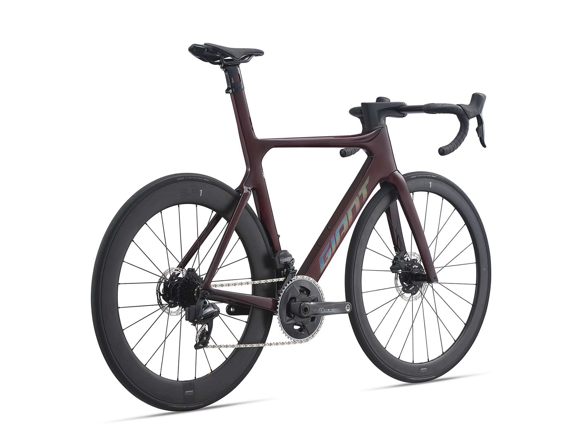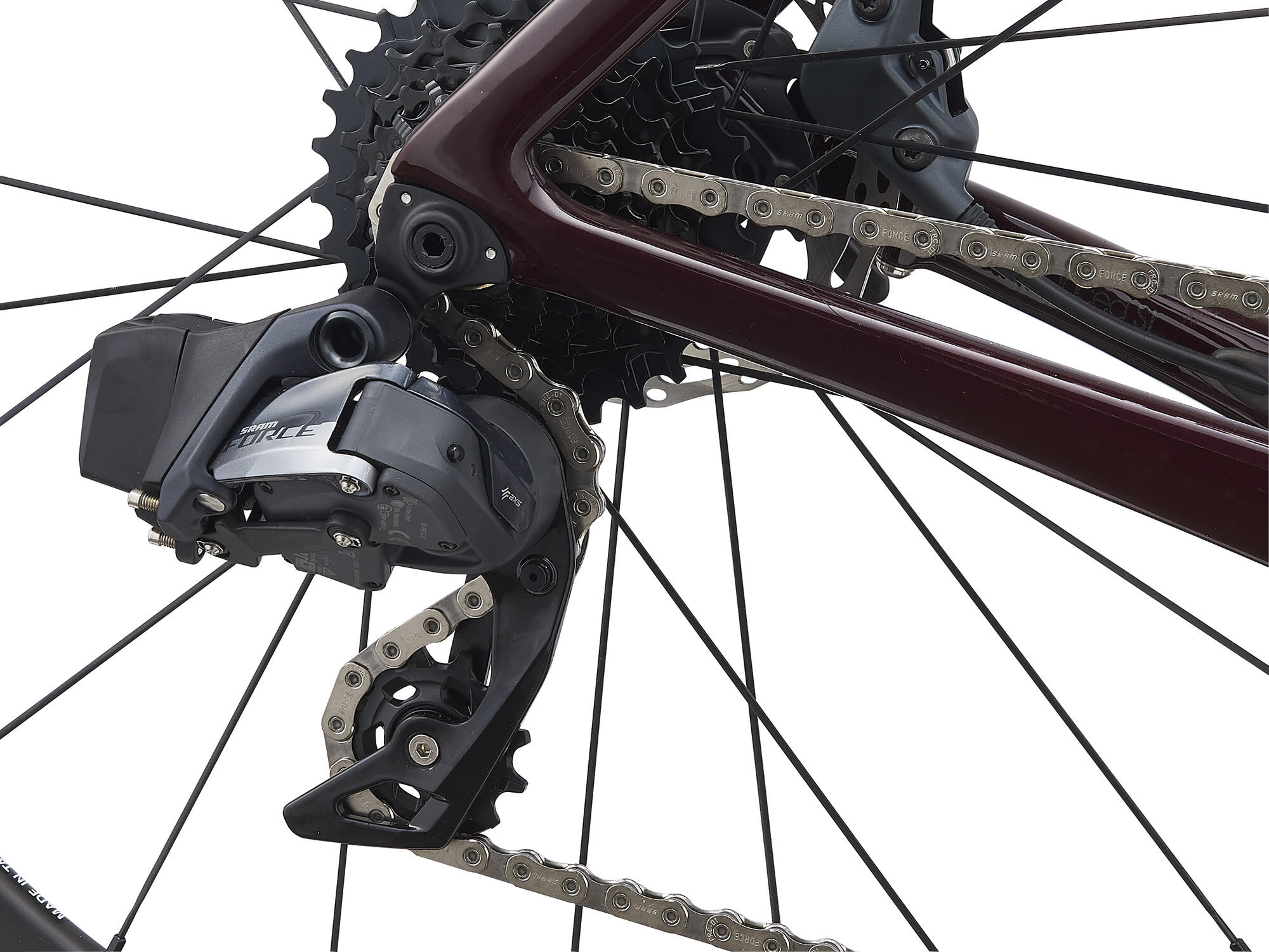 | Style | When speed is your obsession, this is your bike. You train, you put in the work, and this aero machine does the rest. Built to give you an edge when it really counts-on the attack, in the sprint, going all out-it delivers energy-saving efficiency and race-winning aero performance.Advanced SL Composite Technology - Professional Grade raw carbon fiber is woven in our composite factory to produce our lightest, stiffest and highest quality frames. This is the technology used by Giant's pro racers in almost every cycling discipline. AeroSystem Shaping Technology - Through CFD (Computational Fluid Dynamics) and wind-tunnel data, engineers optimize each tube shape to deliver superior aerodynamic performance. Tubeless System - Fewer flat tires. Greater traction. Less rolling resistance and a smoother, faster ride. Giant's Tubeless System makes it easier than ever to experience all these benefits. OverDrive 2 - The most advanced steerer tube technology in today's Giant bikes. Designed to offer unprecedented front-end steering performance, the system's oversized headset bearings (1 1/2" lower, 1 1/4" upper) and tapered steerer tube work in harmony to provide supreme steering stiffness. RideSense Ready - This frame comes prepared to accept the Giant RideSense sensor and accompanying hardware. Specifications:Sizes S, M, ML, LColours Gloss Sin City Red Frame Advanced SL-Grade Composite, integrated seatpost, disc Fork Advanced SL-Grade Composite, full-composite OverDrive 2 steerer, disc Shock Handlebar Giant Contact SLR Aero Stem Giant Contact SLR Aero Seatpost integrated design Saddle Giant Fleet SL Pedals PEDALS NOT SUPPLIED Shifters SRAM Force eTap AXS Front Derailleur SRAM Force eTap AXS Rear Derailleur SRAM Force eTap AXS Brakes SRAM Force eTap AXS hydraulic Brake Levers SRAM Force eTap AXS hydraulic Cassette SRAM Force, 12-speed, 10x28 Chain SRAM Force D1 Crankset SRAM Force D1 DUB, 35/48 with Quarq DZero power meter Bottom Bracket SRAM DUB, press fit Rims Giant SLR 1 Carbon Disc WheelSystem ( F:42mm, R:65mm) Hubs Giant SLR 1 Carbon Disc WheelSystem, 12mm thru-axle Spokes Giant SLR 1 Carbon Disc WheelSystem Tyres CADEX Race 25, tubeless,700x25c (max tyre width possible: 26mm) Extras race axle, tubeless prepared |