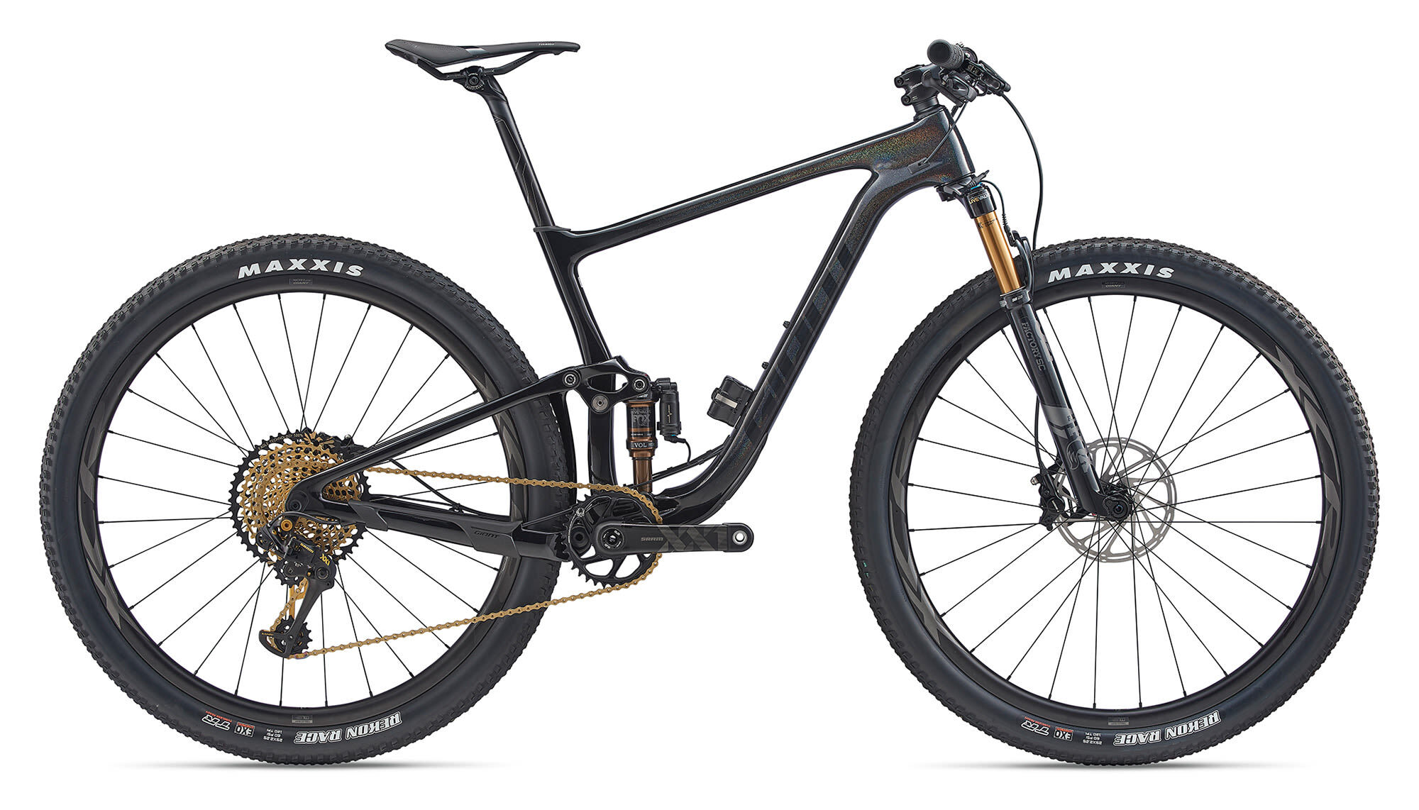 Style | This superlight carbon composite XC flyer blends the most up-to-date Maestro suspension technology with the speed, control and stability of progressive 29er geometry. If XC racing is your game, this is your express route to the podium.Advanced Composite Technology - Giant's High Performance Grade raw carbon material is used to produce this custom frame material in our own composite factory with a high stiffness-to-weight ratio. The front triangle of these framesets is assembled and molded as one continuous piece in a proprietary manufacturing process called Modified Monocoque Construction. Advanced Forged Composite Technology - A state-of-the-art high-pressure moulding process is used to produce complex-shaped carbon fibre components that are lighter, stiffer and stronger than similar components made from aluminium. This technology is used in critical performance parts such as Maestro Suspension rocker links. Maestro Suspension Technology - Four strategically positioned pivot points and two linkages all work together to create a single floating pivot for the most active, efficient and independent suspension system on the trail. OverDrive - Giant's original oversized fork steerer tube technology. Designed to provide precise front-end steering performance, the system's oversized headset bearings (1 1/4" lower and 1 1/8" upper for road, 1 1/2" lower and 1 1/8" upper for mountain) and tapered steerer tube work in conjunction to provide optimal steering stiffness. Tubeless System - Fewer flat tires. Greater traction. Less rolling resistance and a smoother, faster ride. Giant's Tubeless System makes it easier than ever to experience all these benefits. Specifications:Sizes S, M, L, XLColours Gloss Rainbow Black / Black Frame Advanced Grade composite front and rear triangles, 90mm Maestro suspension travel Fork Fox 32 Float SC Factory Live Valve, 100mm, FIT4 damper, Boost 15x110 Kabolt, tapered Shock Fox Float DPS Factory Live Valve Handlebar Giant Contact SLR XC Flat, composite, 750x31.8 Stem Giant Contact SLR, composite Seatpost Giant Contact SLR, composite, 27.2mm Saddle Contact SLR (forward) Pedals Shifters SRAM XX1 Eagle 1X12 Front Derailleur Rear Derailleur SRAM XX1 Eagle Brakes SRAM Level Ultimate Brake Levers SRAM Level Ultimate Cassette SRAM Eagle, 10x50 Chain SRAM XX1 Eagle Crankset SRAM XX1 Eagle DUB, 34t Bottom Bracket SRAM DUB, press fit Rims Giant XCR-0 29 Composite WheelSystem Hubs Giant XCR-0 29 WheelSystem Spokes Giant XCR-0 29 WheelSystem Tyres Maxxis Rekon Race 29x2.25, foldable, TLR, , EXO, tubeless Extras Tubeless prepared |