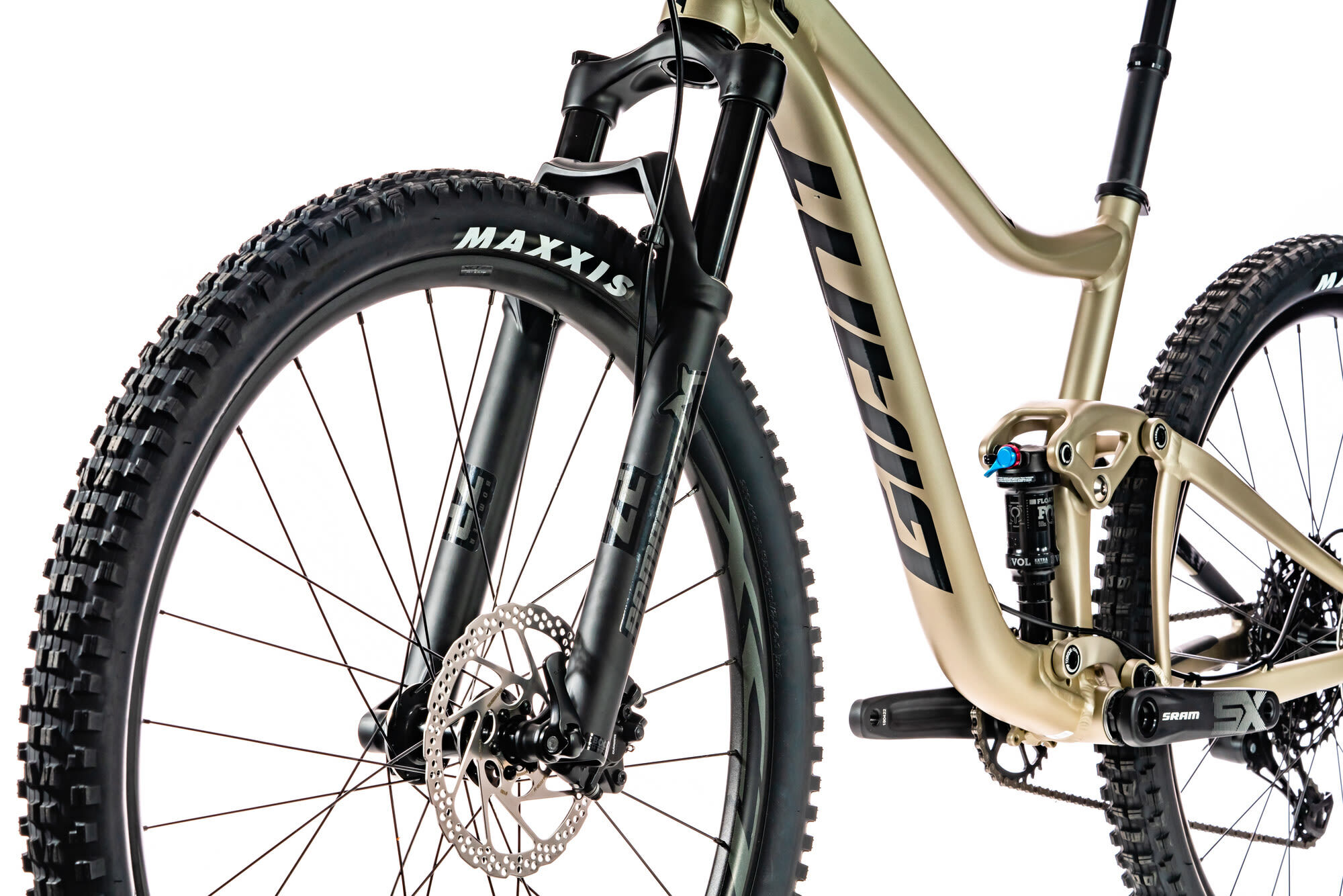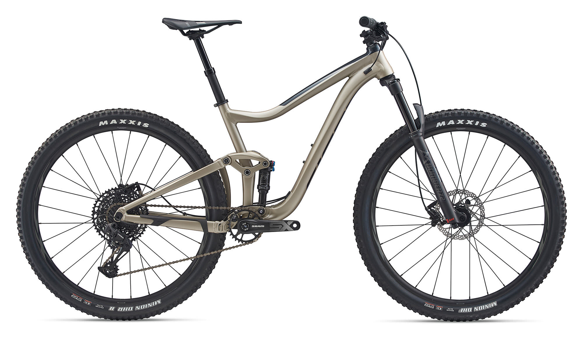 Style | Be your best on the most challenging trails. Climb technical steeps and rail descents with confidence and speed. This short-travel 29er trail bike features re-engineered rear suspension and progressive geometry to help you up your game.ALUXX SL Aluminium Technology - This High-Performance level, state-of-the-art aluminium material is made predominantly from 6011 alloy and delivers best-in-class strength-to-weight ratios. These framesets also feature unique welding technologies for high-performance ride quality. Advanced Forged Composite Technology - A state-of-the-art high-pressure moulding process is used to produce complex-shaped carbon fibre components that are lighter, stiffer and stronger than similar components made from aluminium. This technology is used in critical performance parts such as Maestro Suspension rocker links. Maestro Suspension Technology - Four strategically positioned pivot points and two linkages all work together to create a single floating pivot for the most active, efficient and independent suspension system on the trail. OverDrive - Giant's original oversized fork steerer tube technology. Designed to provide precise front-end steering performance, the system's oversized headset bearings (1 1/4" lower and 1 1/8" upper for road, 1 1/2" lower and 1 1/8" upper for mountain) and tapered steerer tube work in conjunction to provide optimal steering stiffness. Tubeless System - Fewer flat tires. Greater traction. Less rolling resistance and a smoother, faster ride. Giant's Tubeless System makes it easier than ever to experience all these benefits. Specifications:Sizes M, L, XLColours Matte Sand Beige / Gloss Metallic Black Frame ALUXX SL-Grade Aluminum, 115mm Fork Marzocchi Z2, 130mm, GRIP damper, Boost 15x110 QR, tapered Shock Fox Float DPS Performance Handlebar Giant Contact TR35, 780x35mm, 20mm rise Stem Giant Contact SL 35 Seatpost Giant Contact Switch dropper post with remote, 30.9 Saddle Giant Contact (neutral) Pedals Shifters SRAM SX Eagle Front Derailleur Rear Derailleur SRAM SX Eagle Brakes Shimano MT400 Brake Levers Shimano MT401 Cassette SRAM SX Eagle, 11x50 Chain SRAM SX Eagle Crankset SRAM SX Eagle DUB, 30t Bottom Bracket SRAM DUB, press fit Rims Giant XCT 29" tubeless ready sleeve-joint rim, 25mm inner width Hubs [F] Giant Tracker Performance Boost 15x110, sealed bearing [R] Giant Tracker Performance Boost 12x148, sealed bearing Spokes Sapim Tyres [F] Maxxis Minion DHF 29x2.3, EXO, TR [R] Maxxis DHR II 29x2.3, EXO, TR, tubeless Extras Tubeless prepared |