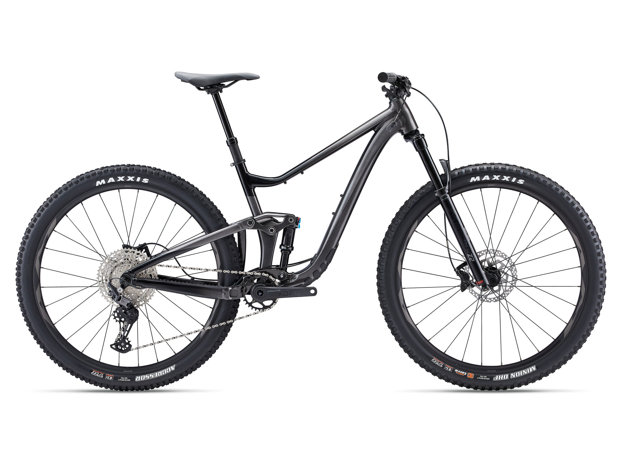 Style | Turn up the heat on technical trails, and do it with more confidence and control. Featuring updated suspension and adjustable geometry, this feisty 29er adapts to the terrain.Advanced Forged Composite Technology - A state-of-the-art high-pressure moulding process is used to produce complex-shaped carbon fibre components that are lighter, stiffer and stronger than similar components made from aluminium. This technology is used in critical performance parts such as Maestro Suspension rocker links. ALUXX SL Aluminium Technology - This High-Performance level, state-of-the-art aluminium material is made predominantly from 6011 alloy and delivers best-in-class strength-to-weight ratios. These framesets also feature unique welding technologies for high-performance ride quality. Maestro Suspension Technology - Four strategically positioned pivot points and two linkages all work together to create a single floating pivot for the most active, efficient and independent suspension system on the trail. OverDrive - Giant's original oversized fork steerer tube technology. Designed to provide precise front-end steering performance, the system's oversized headset bearings (1 1/4" lower and 1 1/8" upper for road, 1 1/2" lower and 1 1/8" upper for mountain) and tapered steerer tube work in conjunction to provide optimal steering stiffness. Tubeless System - Fewer flat tires. Greater traction. Less rolling resistance and a smoother, faster ride. Giant's Tubeless System makes it easier than ever to experience all these benefits. Flip Chip - Maestro - The flip chip allows riders to quickly adjust the geometry of their Maestro-equipped mountain bike to better suit how and where they ride. It lets riders change the headtube/seattube angles and bottom bracket height via eccentric (offset, two-position) hardware located on the upper rocker arm. Specifications:Sizes S, M, L, XLColours Metallic Black / Black Frame ALUXX SL-Grade Aluminum front and rear triangles, 120mm Maestro suspension, flip chip, 12x148mm thru-axle Fork Marzocchi Z2, 130mm, GRIP damper, Boost 15x110 Kabolt, 44mm offset, custom tuned for Giant Shock Fox Float DPS Performance, 185/50, custom tuned for Giant Handlebar Giant Contact TR35, 780x35mm Grips Giant Tactal Pro Single S:120mm, M:120mm, L:130mm, XL:130mm Stem Giant Contact SL 35 S:40mm, M:40mm, L:50mm, XL:50mm Seatpost Giant Contact Switch dropper, remote S: 125mm travel / 30.9 x 395mm M: 150mm travel / 30.9 x 440mm L: 170mm travel / 30.9 x 450mm XL: 170mm travel / 30.9 x 450mm Saddle Giant Romero Pedals PEDALS NOT SUPPLIED Shifters Shimano Deore, 1x12 Front Derailleur Rear Derailleur Shimano Deore Brakes Tektro Orion HD-M475 4 piston hydraulic disc brakes, 180mm rotors Brake Levers Tektro Orion HD-M745 Cassette Shimano Deore, 10x51 Chain KMC X-12 Crankset Praxis Cadet M24, 30t S:165mm, M:170mm, L:170mm, XL:170mm Bottom Bracket Praxis, press fit Rims Giant AM 29 sleeve-joint rim, 30mm inner width Hubs Giant Boost, sealed bearing Spokes Sapim Tyres [F] Maxxis Minion DHF 29x2.5 WT, 3C MaxxTerra, EXO, TR [R] Maxxis Aggressor 29x2.5, EXO, TR, tubeless Extras Factory set up tubeless Max Tyre Clearance 2.6" Max Chainring Size 34t |
