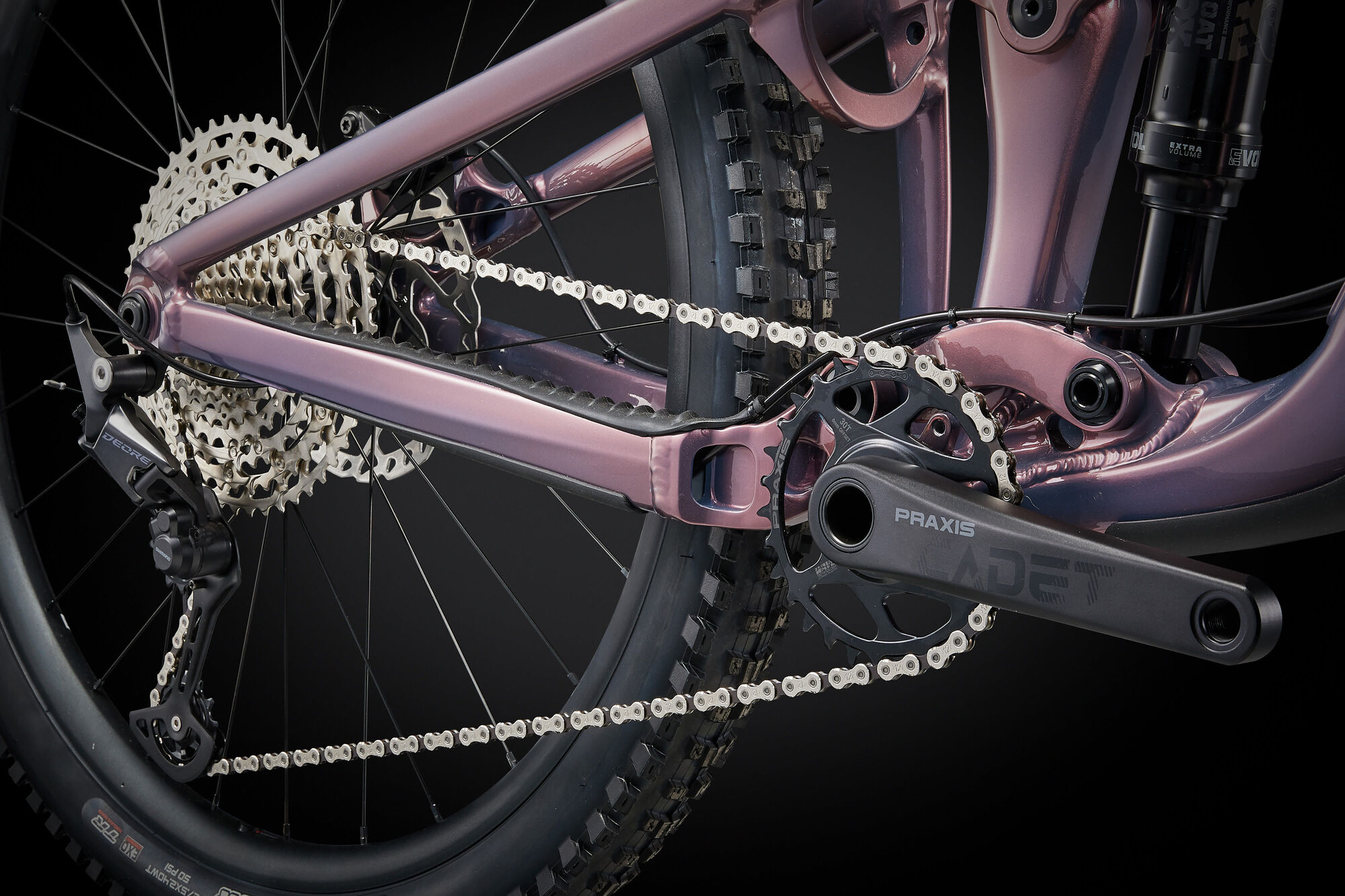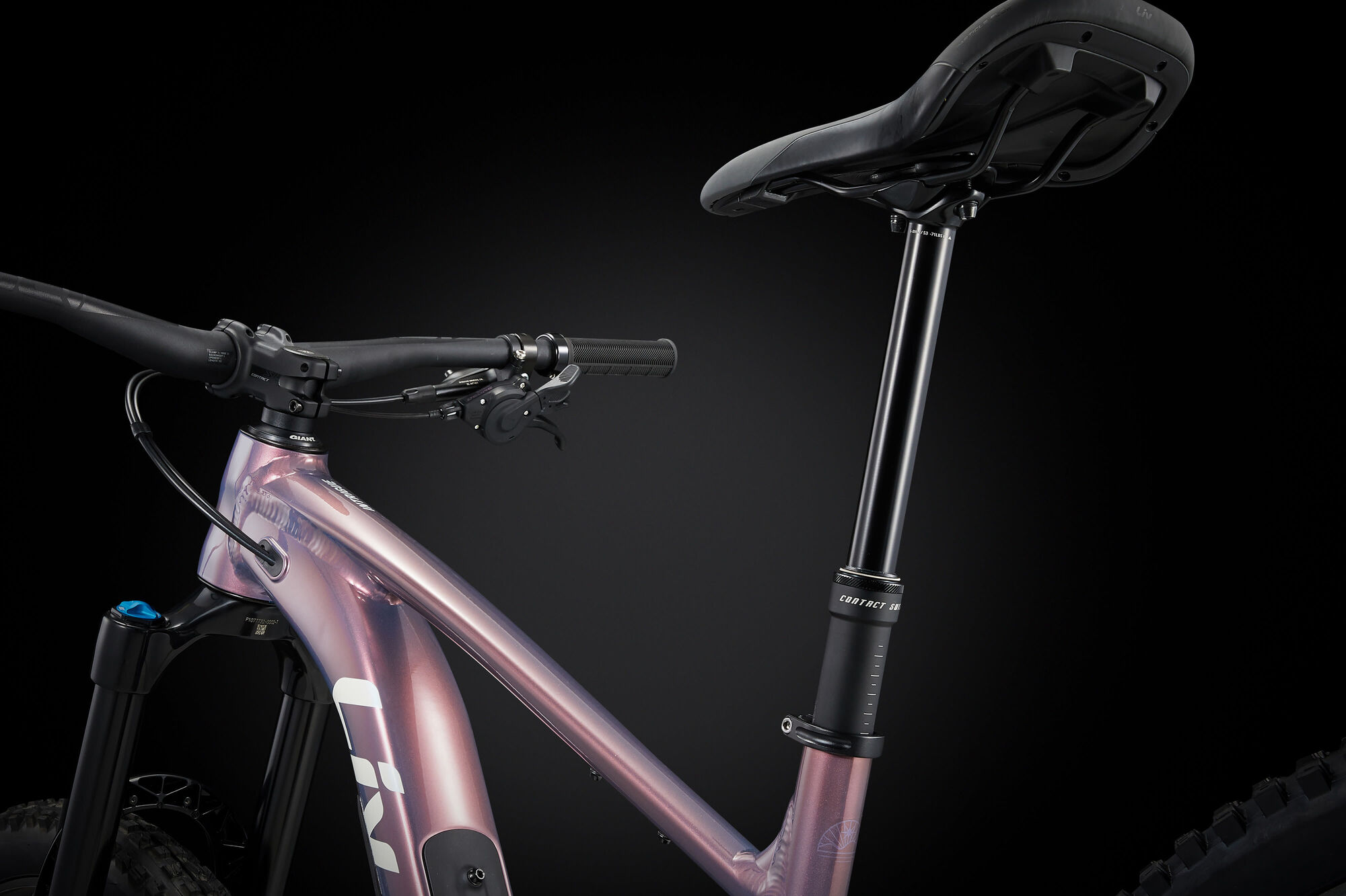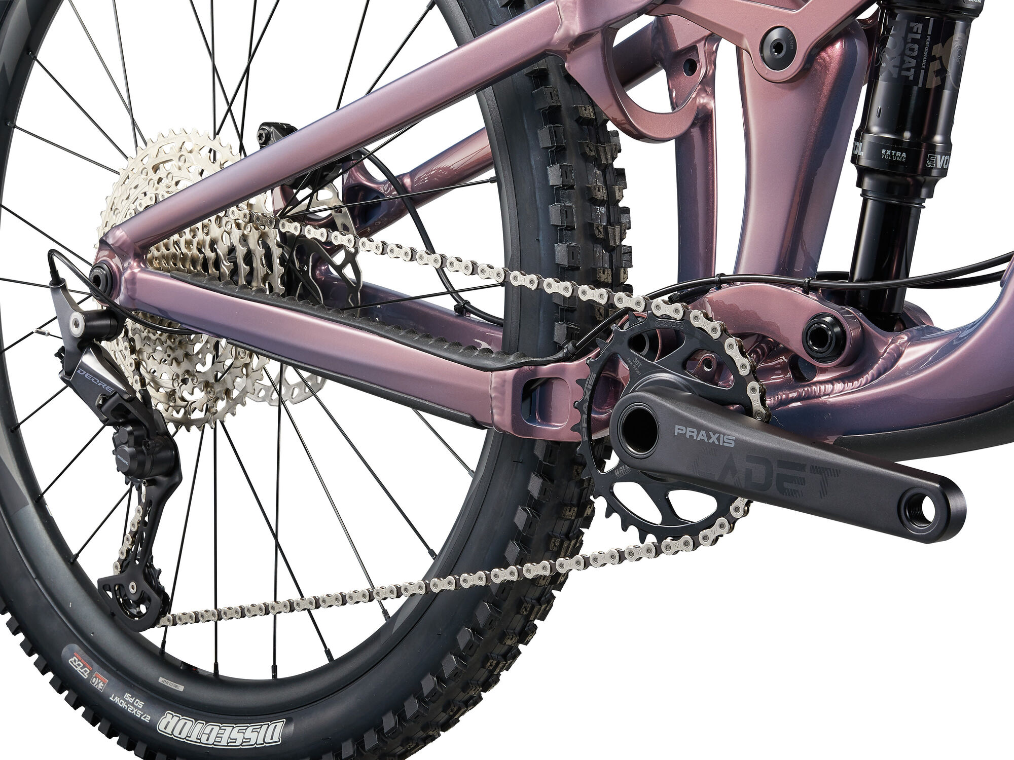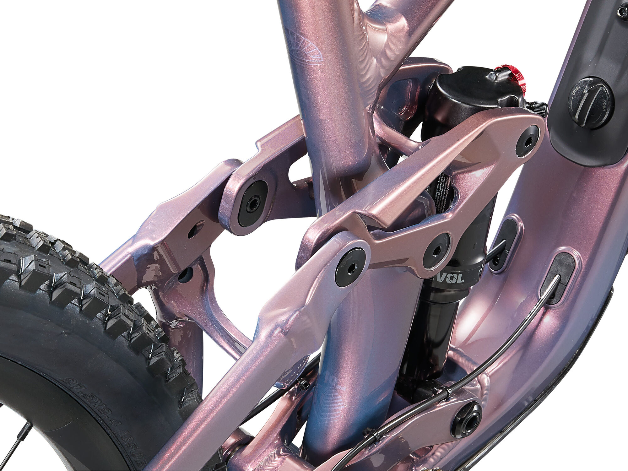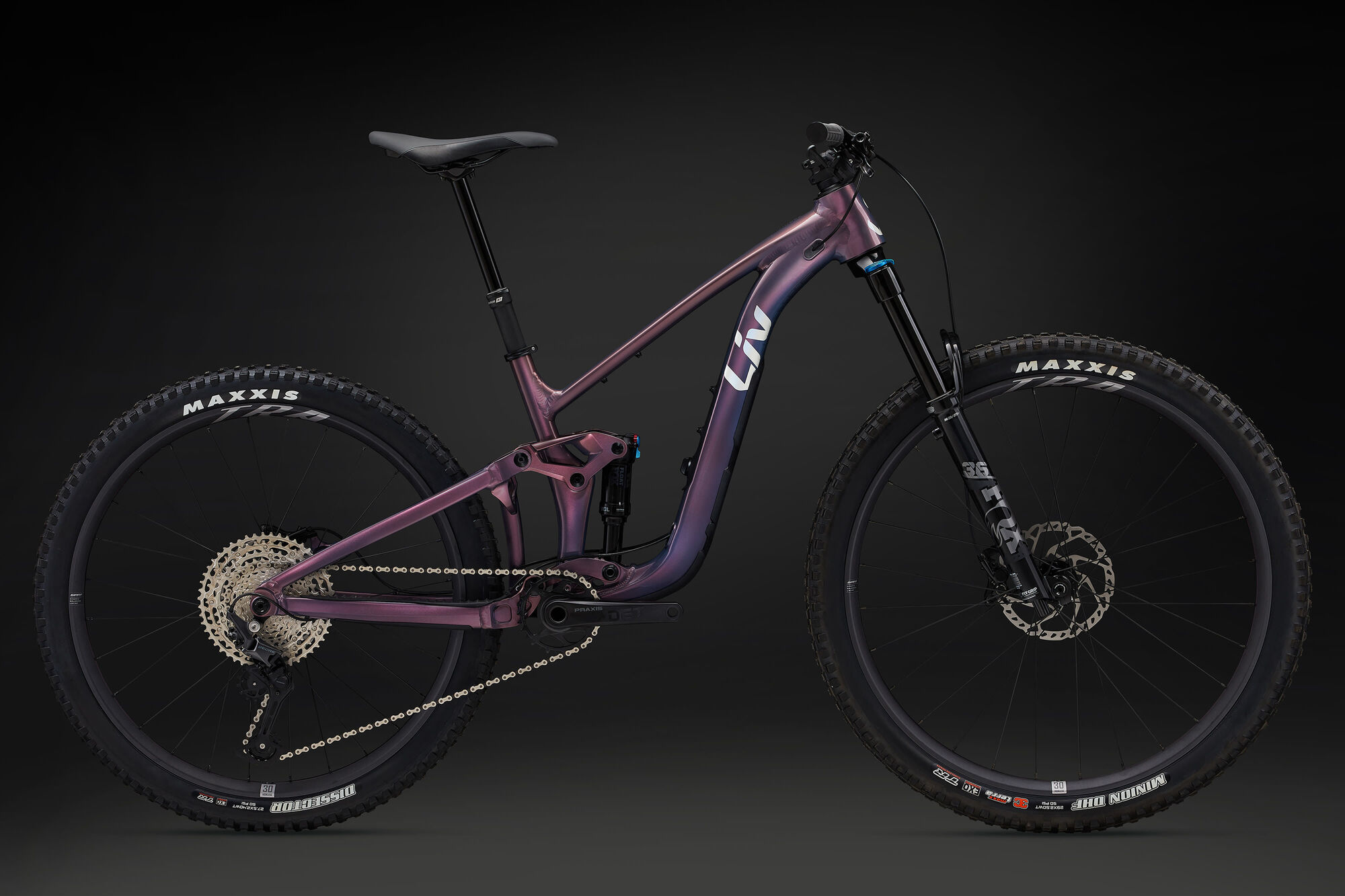 | Style | The exceptionally versatile Intrigue X was designed to expand your trail capabilities, from technical descents to nimble and efficient climbs, and all the exhilarating flowy goodness in between. Extremely customisation with adjustable geometry, frame storage, and wheel options, the Intrigue X delivers extra performance and fun.Advanced Forged Composite Technology - A state-of-the-art, high-pressure moulding process is used to produce complex-shaped carbon fibre components that are lighter, stiffer and stronger than similar aluminium components. ALUXX SL Aluminium Technology - This High-Performance level, state-of-the-art aluminium material is made predominantly from 6011 alloy and delivers best-in-class strength-to-weight ratios. These framesets also feature unique welding technologies for high-performance ride quality. Maestro Suspension Technology - Four strategically positioned pivot points and two linkages all work together to create a single floating pivot for the most active, efficient and independent suspension system on the trail. OverDrive - Designed to provide precise front-end steering performance, this fork steerer tube technology uses oversized headset bearings (1 1/4" lower and 1 1/8" upper for road, 1 1/2" lower and 1 1/8" upper for mountain) and tapered steerer tube work in conjunction to provide optimal steering stiffness. Tubeless System - Engineered with proprietary Dynamic Balanced Lacing technology, this tubeless ready composite WheelSystem delivers superior efficiency, pinpoint control and comfort. Specifications:Sizes XS, S, M, LColours Gloss Desert Dawn Frame ALUXX SL-grade aluminium front and rear triangles, 140mm Maestro Suspension, flip chip - Maestro 3, flip chip - headset, integrated down tube storage Fork Fox 36 Float Rhythm, 150mm, Grip damper, Boost 15x110 Kabolt X, tapered, 44mm offset Shock Fox Float Performance, 185x52.5, custom tuned for Liv Handlebar Giant Contact TR35, 20mm rise, alloy Grips Liv Tactal Pro Single Lock-on Stem Giant Contact SL, 35mm Seatpost Giant Contact Switch, adjustable dropper, remote XS&S: 140-170mm travel / 30.9 x 470mm M&L: 170-200mm travel / 30.9 x 530mm Saddle Liv Sylvia Pedals PEDALS NOT SUPPLIED Shifters Shimano Deore, 1x12 Front Derailleur Rear Derailleur Shimano Deore, Shadow + Brakes Shimano BR-MT420, hydraulic, Shimano RT-66 [F] 203mm, [R] 180mm Brake Levers Shimano BL-MT401 Cassette Shimano Deore M6100, 10x51 Chain KMC X12 Crankset Praxis Cadet M24 Boost, 30t, 55mm chainline Bottom Bracket Praxis, press fit Rims Giant AM, tubeless ready, sleeve-joint, 30mm inner width XS/S: [F] 29, [R] 27.5 M/L: [F] 29, [R] 29 Hubs alloy, sealed bearing Spokes Sapim Tyres Size XS, S, M and L, [F]: Maxxis Minion DHF 29x2.5WT, 3C Max Terra, EXO, TR, tubeless Size XS and S, [R]: Maxxis Dissector 27.5x2.4WT, 3C Max Terra, EXO, TR, tubeless Size M and L, [R]: Maxxis Dissector 29x2.4WT, 3C Max Terra, EXO, TR, tubeless Extras 3M tailgate protector, factory tubeless set up, integrated down tube storage bag Max Tyre Clearance 2.5" Max Chainring Size 34t |