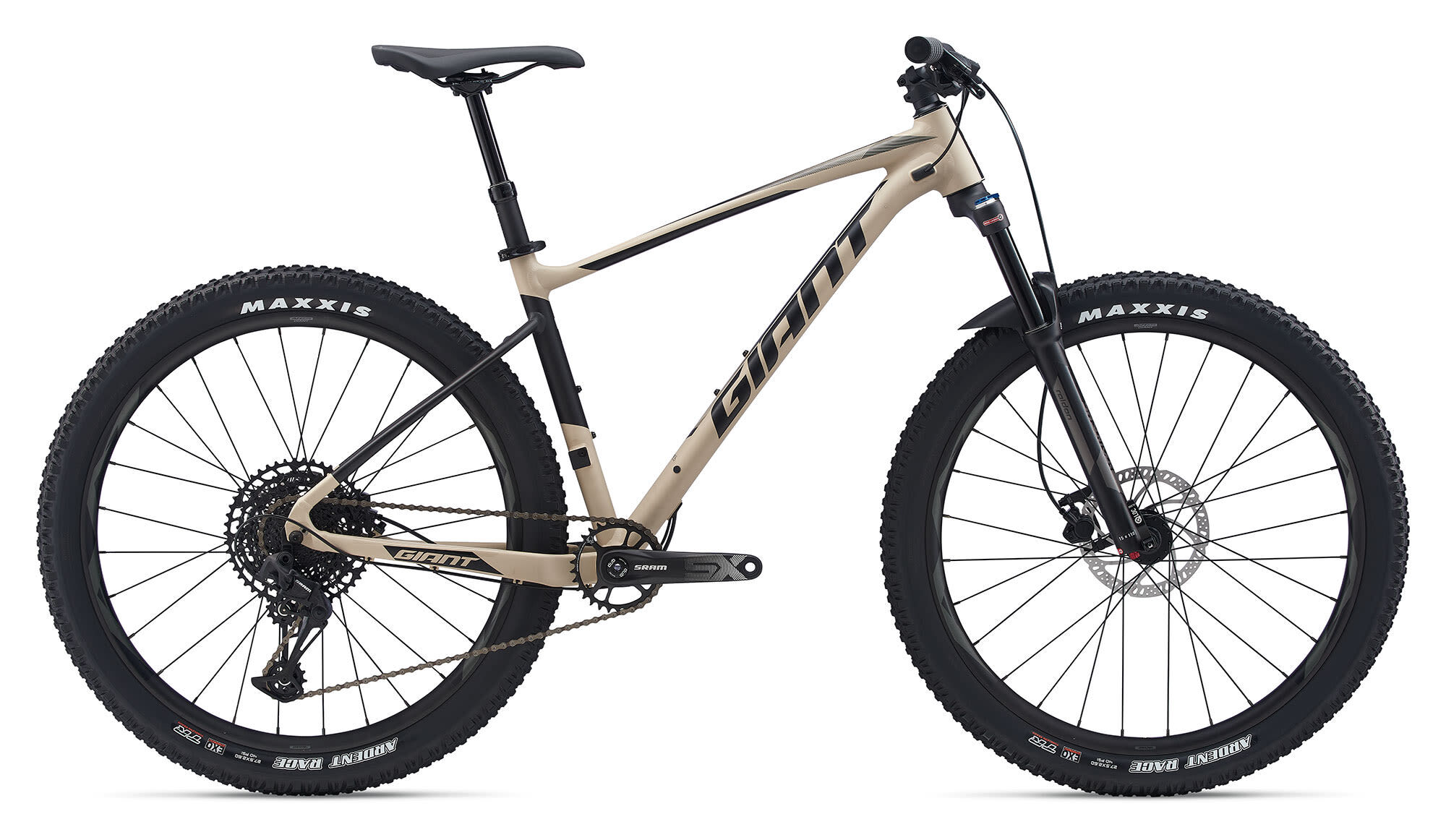 | Style | Get your dose of singletrack with more confidence and control. The combination of a lightweight hardtail frame, 100mm or 120mm suspension fork, 27.5 wheels with wide rims and cushy high-volume tyres delivers loads of traction, speed and fun on the trail.ALUXX SL Aluminium Technology - This High-Performance level, state-of-the-art aluminium material is made predominantly from 6011 alloy and delivers best-in-class strength-to-weight ratios. These framesets also feature unique welding technologies for high-performance ride quality. OverDrive - Giant's original oversized fork steerer tube technology. Designed to provide precise front-end steering performance, the system's oversized headset bearings (1 1/4" lower and 1 1/8" upper for road, 1 1/2" lower and 1 1/8" upper for mountain) and tapered steerer tube work in conjunction to provide optimal steering stiffness. Specifications:Sizes S, M, L, XLColours Matte Desert Sand / Black Frame ALUXX SL-Grade Aluminum Fork Suntour Raidon XC LO-R, 120mm, tapered, 15x110 QR Shock Handlebar Giant Connect Trail, 780x31.8, [GA 690] Stem Giant Contact Seatpost Giant Contact Switch dropper post with remote, 30.9 Saddle Giant custom Pedals Shifters SRAM SX Eagle Front Derailleur Rear Derailleur SRAM SX Eagle Brakes Tektro HDM 275 Brake Levers Tektro HDM 275 Cassette SRAM SX Eagle, 11x50 Chain SRAM SX Eagle Crankset SRAM Eagle SX DUB, 30t Bottom Bracket SRAM DUB, press fit Rims Giant AM 27.5 tubeless ready sleeve-joint rim, 30mm inner width Hubs [F] Giant Tracker Performance Boost 15x110, sealed bearing [R] Giant Tracker Giant Sport Boost QR 141, loose ball Spokes Sapim Tyres Maxxis Ardent Race 27.5x2.6, folding, TR |