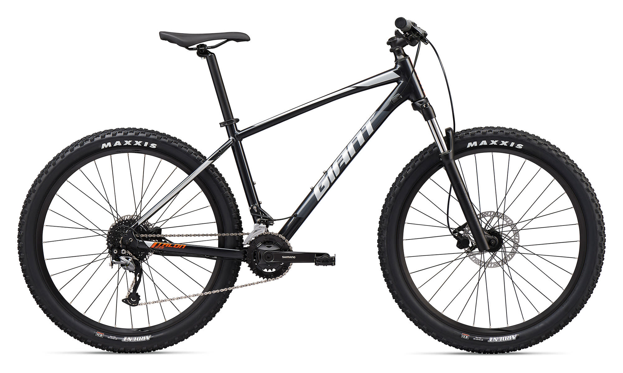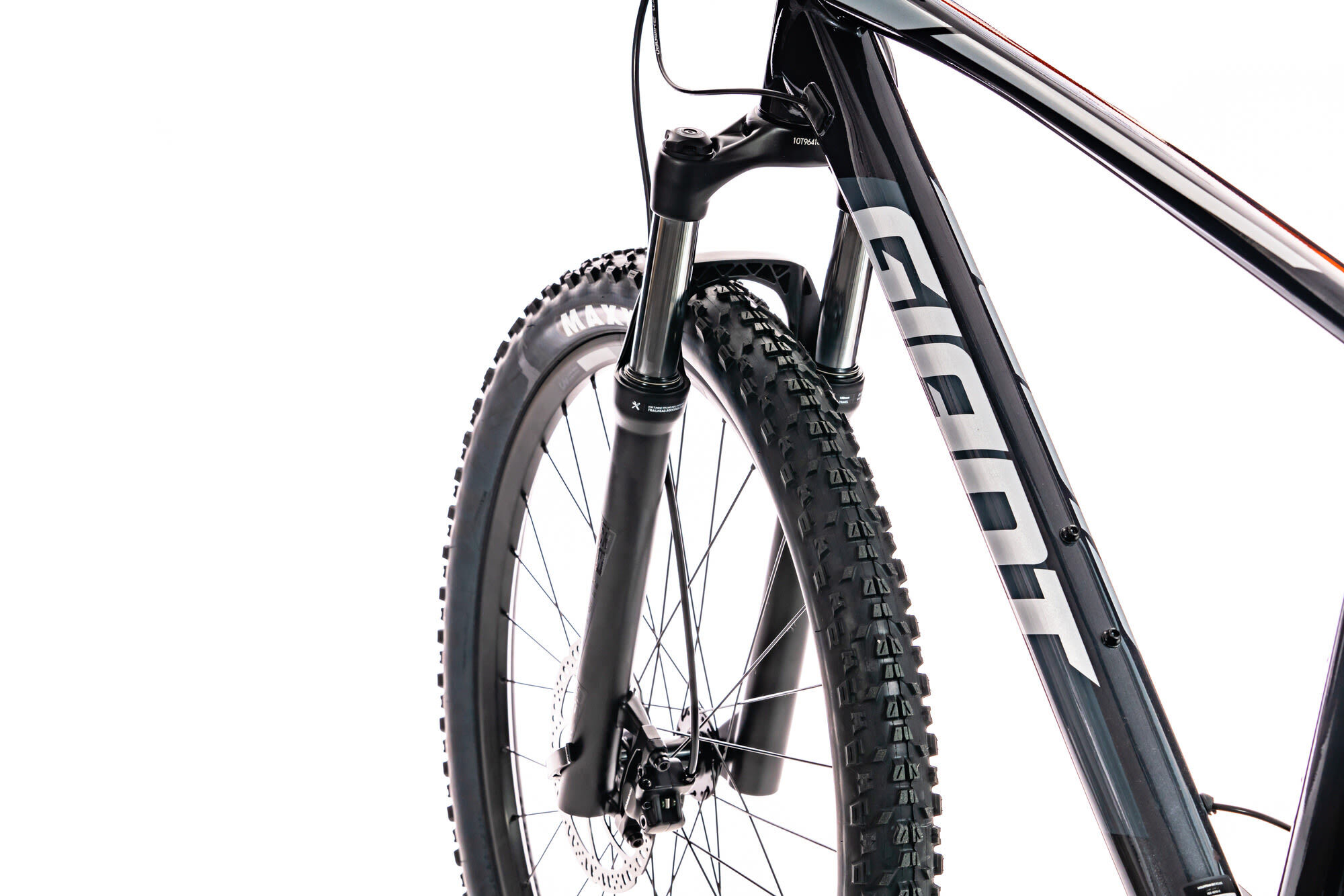| Style | From dirt paths to singletrack trails, this aluminium hardtail will get you rolling with its smooth handling and confident control.ALUXX Aluminium Technology - This Performance level frame material features 6061 alloy with single-butted tubes to produce strong, lightweight framesets for a variety of different bikes and riding styles.Specifications:Sizes S, M, L, XLColours Metallic Black / Orange Frame ALUXX-Grade Aluminum, disc Fork RockShox XC 30, coil spring, preload adjust, TurnKey hydraulic lockout Shock Handlebar Giant Connect Trail, 780x31.8 Stem Giant Sport, 7-degree Seatpost Giant Sport, 30.9 Saddle Giant custom Pedals platform Shifters Shimano Acera Front Derailleur Shimano Alivio Rear Derailleur Shimano Alivio Brakes Tektro HDC M275, hydraulic disc Brake Levers Tektro HDC M275 Cassette Shimano CS-HG200-9, 11x36 Chain KMC X9 Crankset Shimano FC-MT101, 22/36 Bottom Bracket Shimano Rims Giant GX03V 27.5", alloy, double wall, 21mm inner width Hubs [F]Giant Tracker Giant Sport QR, loose ball [R] Giant Tracker Giant Sport QR, loose ball Spokes stainless, 14g Tyres Maxxis Ardent 27.5x2.4, wire bead |