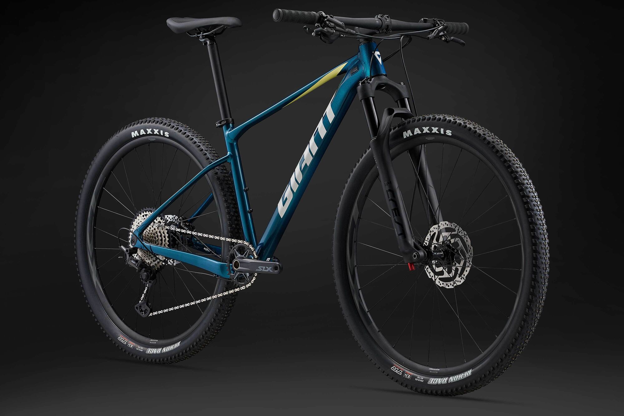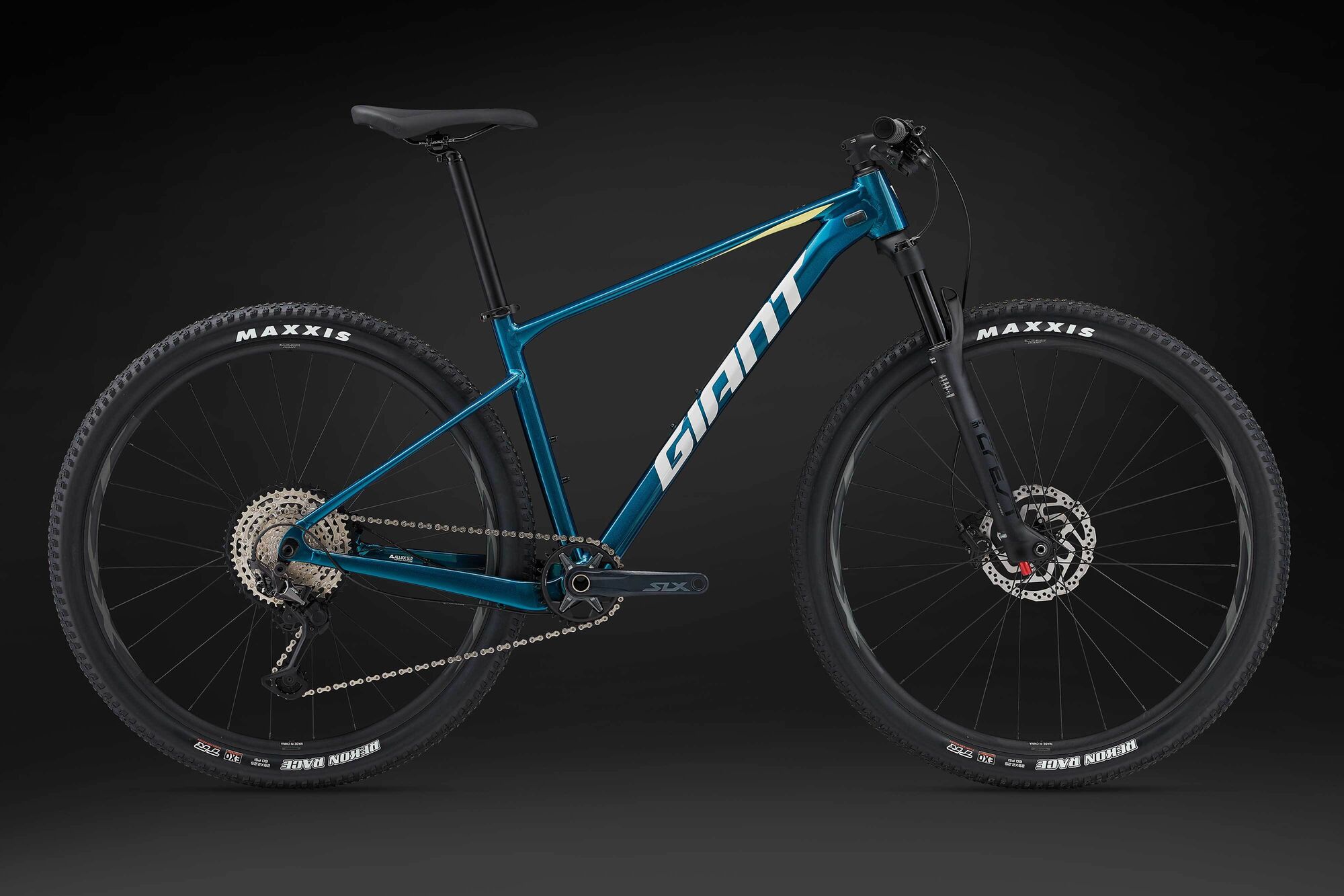 | Style | Hammer up climbs, accelerate on smooth singletrack, carry your speed as the trail dips and dives. This lightweight aluminium 29er delivers efficiency and balanced control.ALUXX SLR Aluminium Technology - This superlight Pro level aluminium material is made predominantly from 6011 alloy and delivers the highest strength-to-weight ratio of any Giant aluminium frameset. State-of-the-art microscopic grain manipulation and advanced butting allow for 20 percent thinner and lighter tube shapes than ALUXX SL framesets. OverDrive - Giant's original oversized fork steerer tube technology. Designed to provide precise front-end steering performance, the system's oversized headset bearings (1 1/4" lower and 1 1/8" upper for road, 1 1/2" lower and 1 1/8" upper for mountain) and tapered steerer tube work in conjunction to provide optimal steering stiffness. Tubeless System - Fewer flat tires. Greater traction. Less rolling resistance and a smoother, faster ride. Giant's Tubeless System makes it easier than ever to experience all these benefits. Specifications:Sizes S, M, L, XLColours Gloss Sea Sparkle Frame ALUXX SLR-grade Aluminium Fork Giant Crest 34 RRL, 100mm, 15x110, remote lockout Shock Handlebar Giant Connect XC, 740x31.8mm Grips Giant Sole-O Stem Giant Contact Seatpost Giant Connect, 30.9mm S:375mm, M:375mm, L:400mm, XL:400mm Saddle Giant Sport Pedals PEDALS NOT SUPPLIED Shifters Shimano SLX M-7100, 1x12 Front Derailleur Rear Derailleur Shimano Deore XT M-8100 Brakes Shimano BR-MT500, hydraulic, Shimano RT-10 rotors [F]180mm, [R]160mm Brake Levers Shimano BR-MT501 Cassette Shimano SLX, 10x51 Chain KMC X-12 Crankset Shimano SLX, 32t Bottom Bracket Shimano, press fit Rims Giant XCT 29, 25mm inner width Hubs Shimano C500, sealed Spokes Stainless steel Tyres Maxxis Recon Race 29x2.25, foldable, TLR, EXO, tubeless Extras Factory tubeless set up Max Tyre Clearance 2.4" Max Chainring Size 36t |