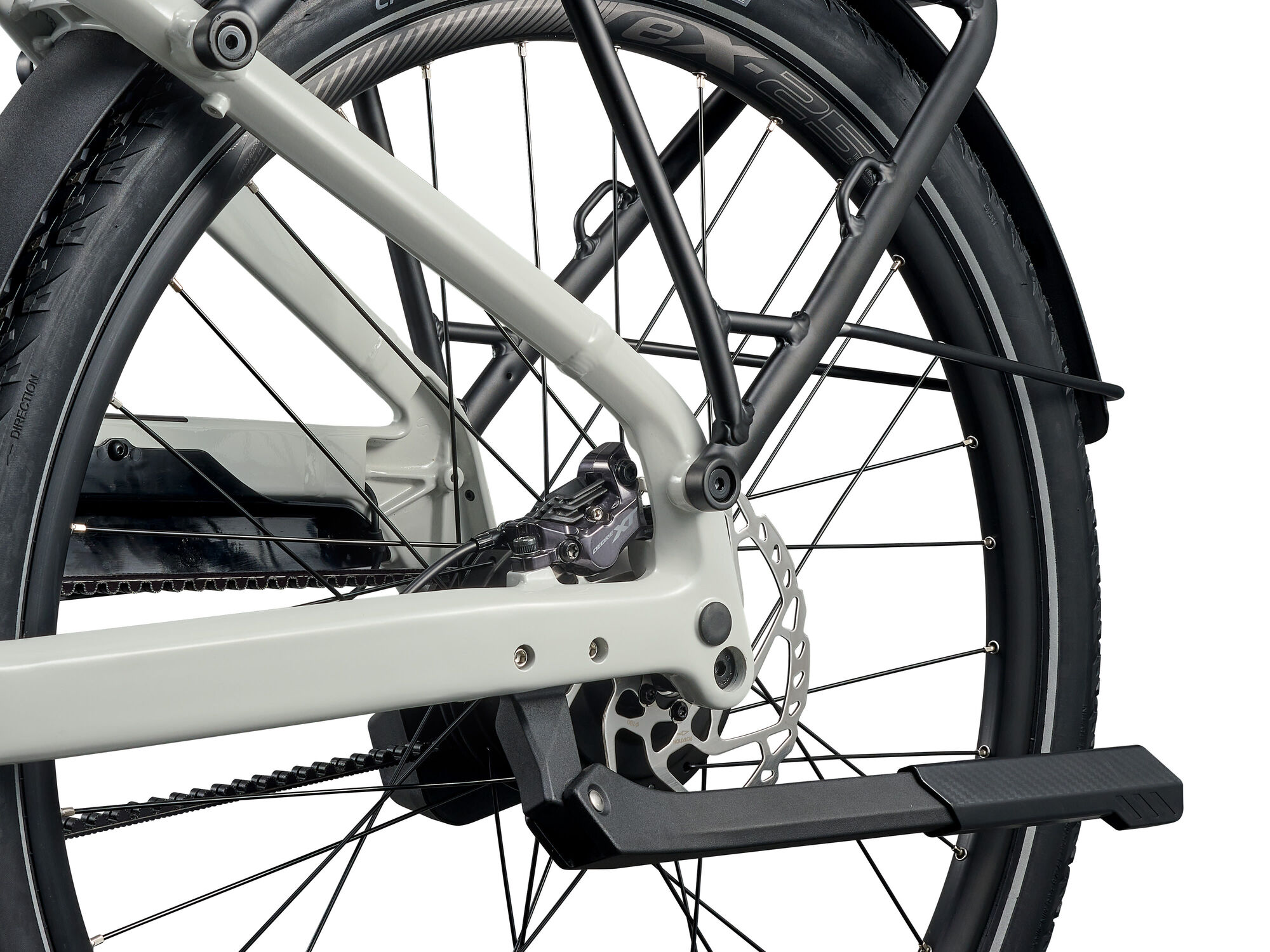 Style | Built for adventure, the Explore E+ turns commutes and escapes into open horizons. With versatile design and seamless integration, it delivers smooth support, confidence, and freedom to ride farther-wherever the journey leads.Specifications:Motor Giant SyncDrive Pro2 85Nm PedalPlus 6-Sensor technologyController Giant RideControl Go 2 Giant RideControl Ergo4 Dual Remotes Display Giant RideDash EVO 2.0, high-angle visibility, 3" full color LCD display, on-board navigation Battery Giant EnergyPak 800Wh, 22700 Lithium cell technology, Aluminium casing with highest safety standard (EN50604) Range CO2 Neutral production Giant EnergyPak Plus 250 range extender compatible Charger Giant EnergyPak 4A smart charger compact, 60% charge in 2:30h Connectivity Giant RideControl App enabled ANT+ wireless display signal with e-bike profile Sizes M, L, XL, XXL Colours Snow Drift Frame Gen 4 ALUXX aluminum, Overdrive 1.8" - 1.5" head tube, integrated battery, integrated KSA40 kickstand mount Fork SR Suntour XCR34 2CR air boost 100mm travel 15x110mm AH axle Shock n/a Handlebar Giant Contour Comfort Riser 31.8x720mm Grips RideControl Ergo4 Integrated Trekking (w/Bar-end) Stem Giant Contour EVO integrated 16a?degree NEW (S/M:80mm L/XL/XXL 100mm) Seatpost Giant Contact Switch Dropper Seatpost (100mm Travel) Saddle Selle Royal Vivo Ergo Moderate Unisex Pedals VPE-537 PP Platform Pedal Shifters Enviolo Trekking Automatiq Integrated Rear Derailleur Enviolo Trekking Automatiq Modular 40T Spline Brakes Shimano Deore XT, BR-M8120, hydraulic disc, 4-piston, 203mm [F] 180mm [R] Brake Levers Shimano Deore XT Cassette Gates CDX stainless steel 22T rear sprocket Chain Gates CDX Carbon Drive 120T CenterTrack belt Crankset Forged alloy spider w/chainguard BCD 104, Gates CDX front sprocket 46T Forged alumium crank arms Rims Giant eX25, Tubeless Ready, 622x25 Aluminium Hubs Giant eTracker Boost 6-bolt disc 15x110mm [F] Enviolo Trekking Automatiq Modular 40T spline 6-bolt disc 148mm [R] Spokes Stainless steel, e-bike optimized Tyres Crosscut Gravel 1, 700x57c, Foldable, Tubeless Ready, w/ Reflection Strip Extras HMI 2.0 including E locking and Apple Find My. Aegis Radar included, on-board radar warning system, Aegis tyre Checker. On-board Tyre Pressure Management System (TPMS) Lighting Supernova Mini 3 [F] Rear Rack Integrated tail light [R] Lock ABUS Xplus battery lock Carrier MIK rack. System bag & basket compatible Tail light integrated Aegis Radar spec-in Fender/Chainguard Alluminum Combined Maximum Load Limit Type 3 150kg |