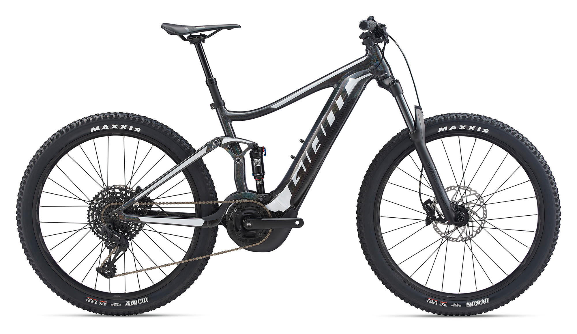 | Style | Steep climbs, technical descents, longer days on the trail. With a powerful SyncDrive Sport motor, this full-suspension E-bike gives you the power and technology to ride the trails you dream about.ALUXX SL Aluminium Technology - This High-Performance level, state-of-the-art aluminium material is made predominantly from 6011 alloy and delivers best-in-class strength-to-weight ratios. These framesets also feature unique welding technologies for high-performance ride quality. FlexPoint Suspension Technology - A proven " single-pivot" design that uses the flexing action of the chainstay/seatstay junction to produce a lightweight and durable suspension system with 4.7 inches/120mm of rear travel. E+ System - E+ System combines electric power with human power to produce a smart, natural and powerful E-bike riding experience. It's an integrated group of technologies that includes our RideControl control units, EnergyPak battery systems and SyncDrive motors. For more information, check out the link below. SyncDrive Sport - Innovation, manufacturing expertise and a motor system powered by Yamaha all combine to expand any rider's abilities. SyncDrive Sport offers three support modes and is equipped on E-bikes that are used for both everyday riding and for more demanding off-road riding. This small mid-drive motor delivers a massive maximum 70Nm of torque and is widely acclaimed for its performance and reliability. RideControl ONE - RideControl ONE takes your E-bike riding experience to new levels with integrated button controls and a clean handlebar free of any display. The E-bikes equipped with RideControl ONE can connect with the Giant E-bike App to function as your E-bike display Tubeless System - Fewer flat tires. Greater traction. Less rolling resistance and a smoother, faster ride. Giant's Tubeless System makes it easier than ever to experience all these benefits. Smart Assist - All SyncDrive motors have Smart Assist technology, which adjusts the support to match the rider's needs. By using information from multiple sensors, both rider input and terrain feedback are used to determine the optimal amount of pedaling assistance. SyncDrive is the only e-bike system that utilizes both rider input and terrain feedback. It gives you a smooth, natural riding experience with ample power when you need it, while also conserving power when you don't need as much. Specifications:Motor Giant SyncDrive Sport, automatic support, 5-mode, 50-350% tunable support, 70Nm, powered by YAMAHASensors Giant PedalPlus 6-sensor technology Display Giant RideControl ONE Battery Giant EnergyPak Smart 500, 36V 13.8Ah integrated Lithium-Ion Sizes S, M, L, XL Colours Rainbow Black Frame ALUXX SL-grade aluminum, 120mm FlexPoint suspension system Fork RockShox Recon RL, 130mm travel, Lockout, 110x15mm MaxleLite Shock RockShox Monarch RT, High Volume, 184x44mm, custom tuned Handlebar Giant Connect TR Riser 31.8x780mm Stem Giant Contact Seatpost Giant Contact Switch, dropper, 30,9mm (S:100mm/M:125mm/L:150mm/XL:170mm) Saddle Giant Contact, Neutral Pedals - Shifters SRAM SX Eagle 12-speed Front Derailleur - Rear Derailleur SRAM SX Eagle 12-speed Brakes Shimano MT420, 4-piston brakes, 203mm Brake Levers Shimano MT401 Hydraulic Disc Cassette SRAM PG-1210, 11-50T, 12-Speed Chain SRAM SX Eagle PowerLock, 12-speed Crankset SRAM X-Sync Eagle 38T 104BCD chainring Forged Alloy minimal Q-factor, 38T Steel Direct Mount ring (S:160, M/L:165, XL:170) Bottom Bracket Rims Giant AM 27.5+, Tubeless ready, 35mm inner width Hubs Giant eTracker Sport, [F] 15mm Thru-Axle [R] 141mm QR Spokes Stainless Steel Tyres Maxxis Rekon 27.5x2.6", Exo protect, Tubeless Ready Extras Giant EnergyPak 6A Smart charger |