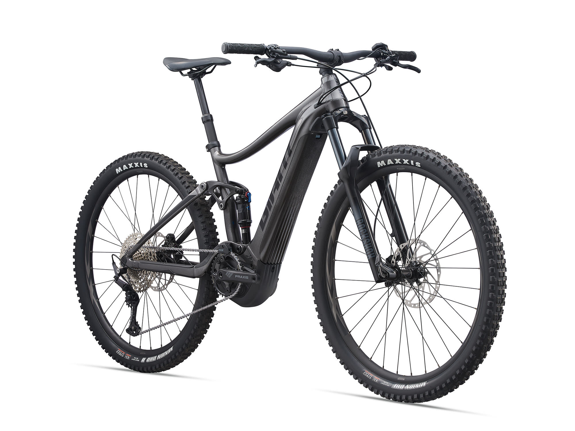 | Style | Experience trail riding like never before. With a powerful motor, smooth suspension and the added stability of 29-inch wheels, the Stance E+ Pro 29 helps you boost the fun factor on challenging terrain.ALUXX SL Aluminium Technology - This High-Performance level, state-of-the-art aluminium material is made predominantly from 6011 alloy and delivers best-in-class strength-to-weight ratios. These framesets also feature unique welding technologies for high-performance ride quality. FlexPoint Suspension Technology - A proven " single-pivot" design that uses the flexing action of the chainstay/seatstay junction to produce a lightweight and durable suspension system with 4.7 inches/120mm of rear travel. E+ System - E+ System combines electric power with human power to produce a smart, natural and powerful E-bike riding experience. It's an integrated group of technologies that includes our RideControl control units, EnergyPak battery systems and SyncDrive motors. For more information, check out the link below. SyncDrive - Revolutionize your ride with an E-bike motor system that adapts to you. Experience natural momentum in motion as SyncDrive technology enhances every moment of your journey, opening new horizons for every rider. Smart Assist - All SyncDrive motors have Smart Assist technology, which adjusts the support to match the rider's needs. By using information from multiple sensors, both rider input and terrain feedback are used to determine the optimal amount of pedaling assistance. SyncDrive is the only e-bike system that utilizes both rider input and terrain feedback. It gives you a smooth, natural riding experience with ample power when you need it, while also conserving power when you don't need as much. Tubeless System - Fewer flat tires. Greater traction. Less rolling resistance and a smoother, faster ride. Giant's Tubeless System makes it easier than ever to experience all these benefits. RideControl Ergo - RideControl Ergo takes your E-bike riding experience to new levels with optimized controls and a clean handlebar layout. The robust buttons are designed to use in all conditions with a comfortable feel and grip. The controls are thoughtfully designed with new LED lighting that shows your battery level and lets you switch between five support modes (Power, Sport, Active, Basic, Eco). It's also compatible with the new RideDash EVO, an integrated display that mounts on the handlebar/stem area and shows important ride date such as speed, distance and navigation. Energypak - Giant's latest EnergyPak battery systems feature streamlined designs that are integrated with the E-bike for a sleek and modern profile. Giant E-bikes offer several different EnergyPak options including the EnergyPak Smart and EnergyPak. Each one is designed to optimize the E-bike experience for a specific style of riding. Specifications:Motor Giant SyncDrive Pro, 80NmController Giant RideControl Ergo Display Battery Giant EnergyPak Smart 625, 36V 17.3Ah integrated Lithium-Ion Sizes S, M, L, XL Colours Gloss Metallic Black Frame ALUXX SL-grade aluminium, 120mm FlexPoint suspension system Fork RockShox Recon Silver RL,130mm travel, Lock-out, Tapered Steerer,15x110mm Boost, MaxleLite, e-MTB optimised Shock RockShox Monarch RT, High Volume, 184x44mm, custom tuned Handlebar Giant Connect TR Riser 31.8x780mm Stem Giant Contact Seatpost Giant Contact Switch, dropper, 30,9mm (S:100/M:125/L:150/XL:170) Saddle Giant Romero Trail Pedals PEDALS NOT SUPPLIED Shifters Shimano Deore 12-speed I-spec EV Front Derailleur MRP 1X custom "V3" co-moulded TR chain guide Rear Derailleur Shimano Deore 12-speed Brakes Shimano BR-MT420, 4-piston, hydraulic disc, 203mm Brake Levers Shimano Deore BL-M4100 I-spec EV Cassette Shimano CS-M6100-12, 10-51T, 12-speed Chain KMC e.12 Turbo, EcoProteq, e-bike optimised Crankset Praxis Wavetm 36T Cold Forged 4130 premium steel Praxis e-Cadet+ custom forged crankarm set (Q-factor=168, S:160, M/L:165, XL:170) Bottom Bracket Rims Giant XCT 29 Tubeless Ready 25mm e-bike optimised Hubs Shimano MT410 Boost, Center-Lock, [F] 110x15 [R] 148x12mm Micro-Spline Drive Body Thru-axle Spokes Sapim E-Lite [R] Race [F], e-bike optimised Tyres Maxxis Minion DHF 29X2.5" 60TPI Foldable, TLR EXO [F]Maxxis Minion DHR II 29X2.40 60TPI Foldable TLR EXO [R] Extras Giant EnergyPak Smart 6A charger Tubeless kit (liquid, valves, levers, manual, tool) |