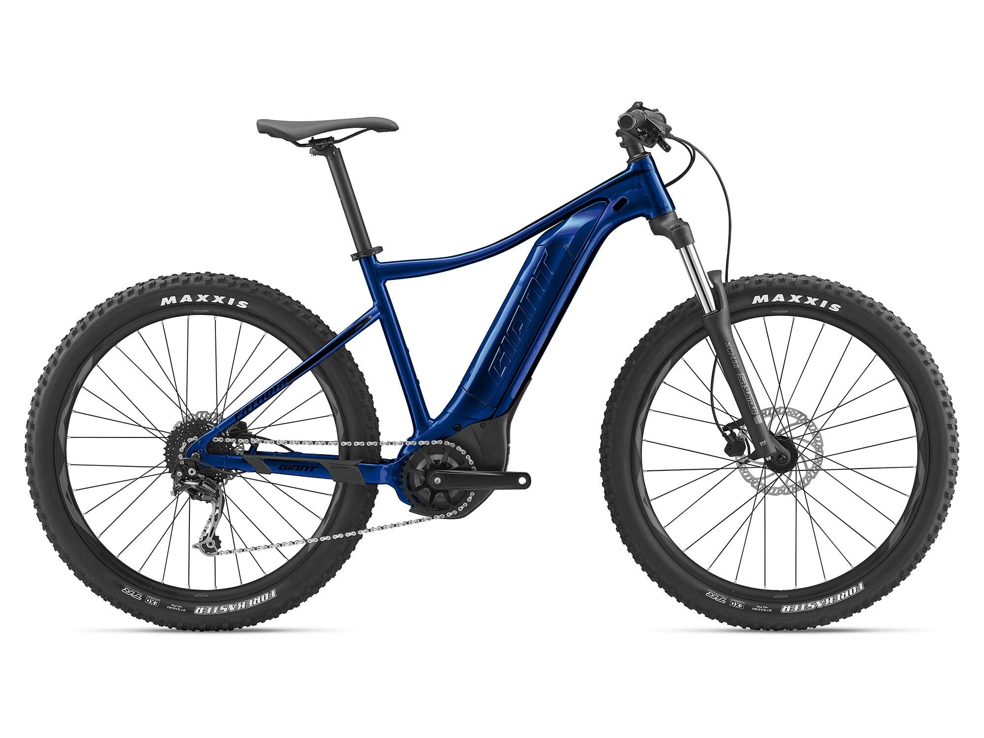| Style | Take control of the trail with this fun new hardtail E-bike. Now you can climb with greater ease and comfort, and ride farther-the perfect formula for an enjoyable day on the trail.ALUXX SL Aluminium Technology - This High-Performance level, state-of-the-art aluminium material is made predominantly from 6011 alloy and delivers best-in-class strength-to-weight ratios. These framesets also feature unique welding technologies for high-performance ride quality. E+ System - E+ System combines electric power with human power to produce a smart, natural and powerful E-bike riding experience. It's an integrated group of technologies that includes our RideControl control units, EnergyPak battery systems and SyncDrive motors. For more information, check out the link below. RideControl ONE - RideControl ONE takes your E-bike riding experience to new levels with integrated button controls and a clean handlebar free of any display. The E-bikes equipped with RideControl ONE can connect with the Giant E-bike App to function as your E-bike display Smart Assist - All SyncDrive motors have Smart Assist technology, which adjusts the support to match the rider's needs. By using information from multiple sensors, both rider input and terrain feedback are used to determine the optimal amount of pedaling assistance. SyncDrive is the only e-bike system that utilizes both rider input and terrain feedback. It gives you a smooth, natural riding experience with ample power when you need it, while also conserving power when you don't need as much. SyncDrive Sport - Innovation, manufacturing expertise and a motor system powered by Yamaha all combine to expand any rider's abilities. SyncDrive Sport offers three support modes and is equipped on E-bikes that are used for both everyday riding and for more demanding off-road riding. This small mid-drive motor delivers a massive maximum 70Nm of torque and is widely acclaimed for its performance and reliability. Tubeless System - Fewer flat tires. Greater traction. Less rolling resistance and a smoother, faster ride. Giant's Tubeless System makes it easier than ever to experience all these benefits. Energypak - Giant's latest EnergyPak battery systems feature streamlined designs that are integrated with the E-bike for a sleek and modern profile. Giant E-bikes offer several different EnergyPak options including the EnergyPak Smart and EnergyPak. Each one is designed to optimize the E-bike experience for a specific style of riding. Specifications:Motor Giant SyncDrive Sport, 70NmController RideControl One Sensors Giant PedalPlus 6-sensor technology Display Wireless display compatible (ANT+ and Bluetooth) Battery Giant EnergyPak 400, 36V 11.3Ah Rechargeable Lithium-Ion Sizes XS, S, M, L, XL Colours Metallic Blue / Black Frame ALUXX aluminium, Overdrive 1½ - 1a??" head tube, 141mm Boost QR, integrated KS18 kickstand mount Fork SR Suntour XCM 32 NLO DS 15AH-110, 27.5 120mm travel, Tapered 1½ - 1a??" steerer, lockout Shock Handlebar Giant Connect TR Riser 31.8x750mm Stem Giant Contact Seatpost Giant 30.9mm, 2-bolt Micro Adjustable, Forged Aluminium Saddle Giant Sport Pedals Aluminum Platform Shifters Shimano SL-M2000 Front Derailleur - Rear Derailleur Shimano Alivio M3100, 9-Speed Brakes Tektro HD-M285, hydraulic disc, 180mm Brake Levers Tektro HD-M285 Cassette Shimano CS-HG200, 11-36T, 9-Speed Chain KMC e.9 Sport Crankset Forged Alloy minimal Q-factor, 36T Steel Direct Mount ring Bottom Bracket Rims Giant AM 27.5, Tubeless ready, 30mm inner width Hubs Giant eTracker Sport, [F] 15mm Thru-Axle [R] 141mm QR Spokes Stainless steel Tyres Maxxis Recon 27.5x2.6, foldable, 60 TPI Extras Giant EnergyPak 4A charger |