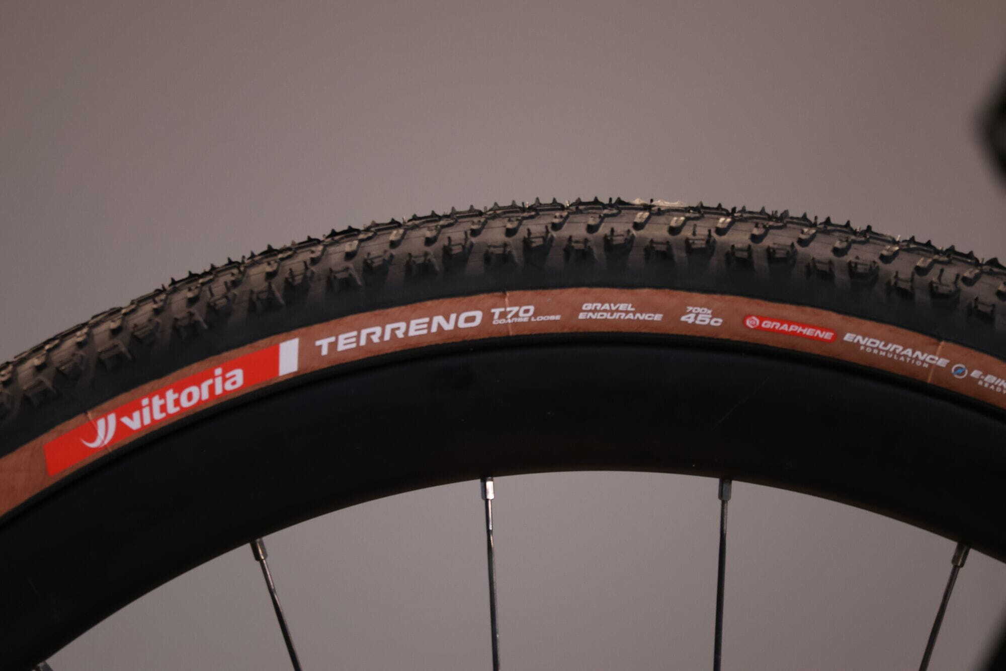 World Championship Winning MTB technology for your gravel bike The Terreno T70 Coarse Loose Gravel Endurance tire brings World Championship - winning mountain bike technology to your gravel rig. With a T-score of 70, the Terreno T70 is designed for riders who thrive on rugged gravel routes, where loose surfaces and unpredictable conditions are the norm. Adapted from the proven Mezcal XC tread design, the T70 delivers XC race-level speed and grip, and is now optimized for coarse, loose gravel. Built from the Endurance Formulation powered by Graphene, the T70 tread offers weather-resistant dependability, all-condition performance, and the long-lasting resilience needed for epic gravel outings. A fast-rolling center tread ensures momentum on straights, while aggressive shoulder knobs and full-depth tread siping bring control and confidence in corners, offering exceptional traction when terrain gets technical.? Built on Vittoria?s Endurance Casing, the T70 offers high adaptability and toughness for long-distance adventures. Reinforced nylon sidewall protection and an anti-puncture belt provide the durability and stability needed to handle rough terrain and sharp impacts. Key Info Endurance Formulation powered by Graphene - Developed for maximum durability, grip, and longevity, this advanced rubber compound is infused with Graphene to boost performance across a wide range of conditions. Built for all-weather dependability and long-distance use, it ensures consistent traction and efficiency when it matters most. Endurance Casing - Engineered with 100 TPI nylon, the Endurance Casing is built to handle the harsh demands of gravel riding. Its durable threads reduce rolling resistance while preserving a responsive ride feel, and help absorb trail chatter for added comfort and control on rough terrain. Designed for long-distance durability, it?s the foundation of reliable performance on every ride. Bead Shield - Additional layer on the bead provides extra protection. Anti-puncture belt - Designed to provide extra puncture resistance, ensuring your ride stays smooth and uninterrupted. Sidewall protection - Reinforcing nylon layer for extra protection and lateral stability. Features: |