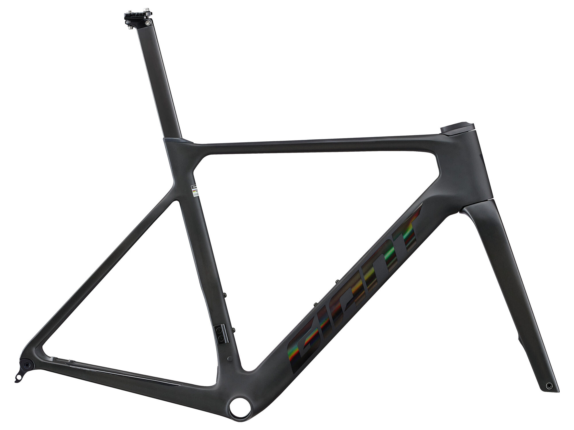 | Style | Advanced Composite Technology - Giant's High Performance Grade raw carbon material is used to produce this custom frame material in our own composite factory with a high stiffness-to-weight ratio. The front triangle of these framesets is assembled and molded as one continuous piece in a proprietary manufacturing process called Modified Monocoque Construction. AeroSystem Shaping Technology - Through CFD (Computational Fluid Dynamics) and wind-tunnel data, engineers optimize each tube shape to deliver superior aerodynamic performance. OverDrive Aero - Found inside the head tube of the Defy, Propel and TCR ranges, the D-shaped fork steerer tube and corresponding spacers provide an extremely aerodynamic, easier to service system of internally routed brake and derailleur cables. Specifications:Sizes XS, S, M, M/L, L, XLColours Stealth Chrome/Iris Frame Advanced-grade Composite, 12x142mm thru-axle, disc Fork Advanced SL-grade Composite, full-composite OverDrive Aero steerer, 12x100mm thru-axle, disc Seatpost Giant Vector, composite, -5/+15mm offset Extras computer mount, bottle cages, tubeless prepared, 32mm max tire size Max Tyre Clearance 32mm |