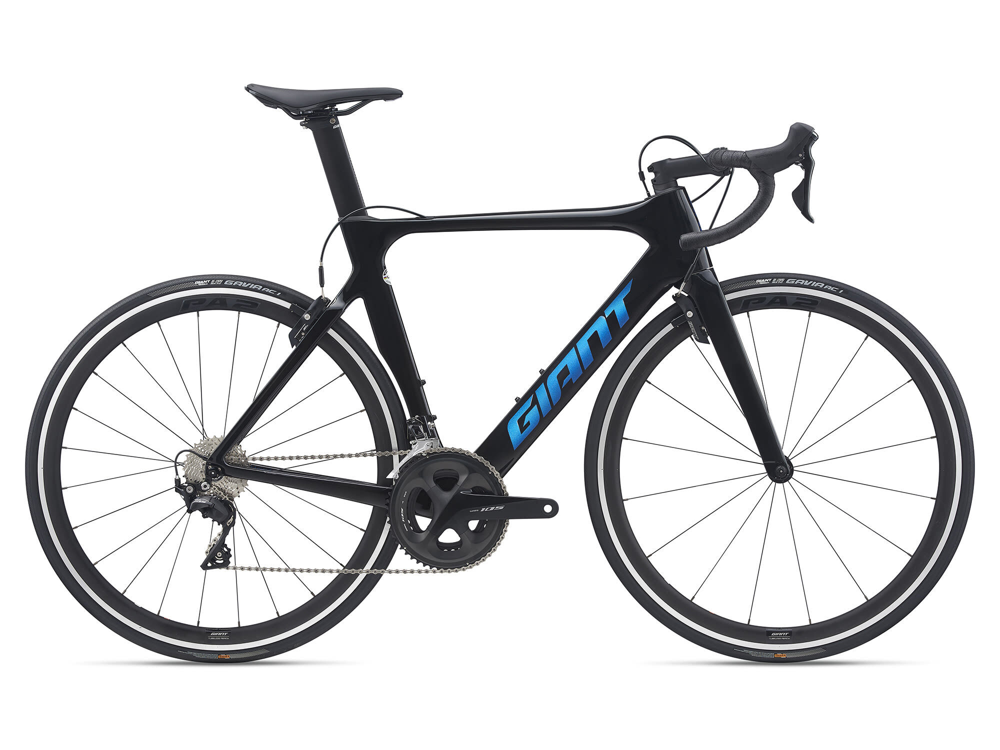 | Style | Lower your drag and raise the bar. This aero road machine makes the most of your watts without compromising ride quality. Its lightweight composite frame is tuned for quick, responsive handling whether you're sprinting, chasing or making your attack.Advanced Composite Technology - Giant's High Performance Grade raw carbon material is used to produce this custom frame material in our own composite factory with a high stiffness-to-weight ratio. The front triangle of these framesets is assembled and molded as one continuous piece in a proprietary manufacturing process called Modified Monocoque Construction. OverDrive - Giant's original oversized fork steerer tube technology. Designed to provide precise front-end steering performance, the system's oversized headset bearings (1 1/4" lower and 1 1/8" upper for road, 1 1/2" lower and 1 1/8" upper for mountain) and tapered steerer tube work in conjunction to provide optimal steering stiffness. AeroSystem Shaping Technology - Through CFD (Computational Fluid Dynamics) and wind-tunnel data, engineers optimize each tube shape to deliver superior aerodynamic performance. Tubeless System - Fewer flat tires. Greater traction. Less rolling resistance and a smoother, faster ride. Giant's Tubeless System makes it easier than ever to experience all these benefits. RideSense Ready - This frame comes prepared to accept the Giant RideSense sensor and accompanying hardware. Specifications:Sizes XS, S, M, ML, L, XLColours Gloss Carbon Smoke Frame Advanced-Grade Composite Fork Advanced-Grade Composite, hybrid OverDrive steerer Shock Handlebar Giant Contact Stem Giant Contact Seatpost Giant Vector, composite Saddle Giant Approach Pedals PEDALS NOT SUPPLIED Shifters Shimano 105 Front Derailleur Shimano 105 Rear Derailleur Shimano 105 Brakes Giant SpeedControl Brake Levers Shimano 105 Cassette Shimano 105, 11x30 Chain KMC X11EL-1 Crankset Shimano 105, 36/52 Bottom Bracket Shimano, press fit Rims Giant P-A2 wheelset Hubs Giant P-A2 wheelset Spokes Giant P-A2 wheelset Tyres Giant Gavia Course AC 1, tubeless, 700x25c (max tyre size possible: 26mm) Extras tubeless prepared |