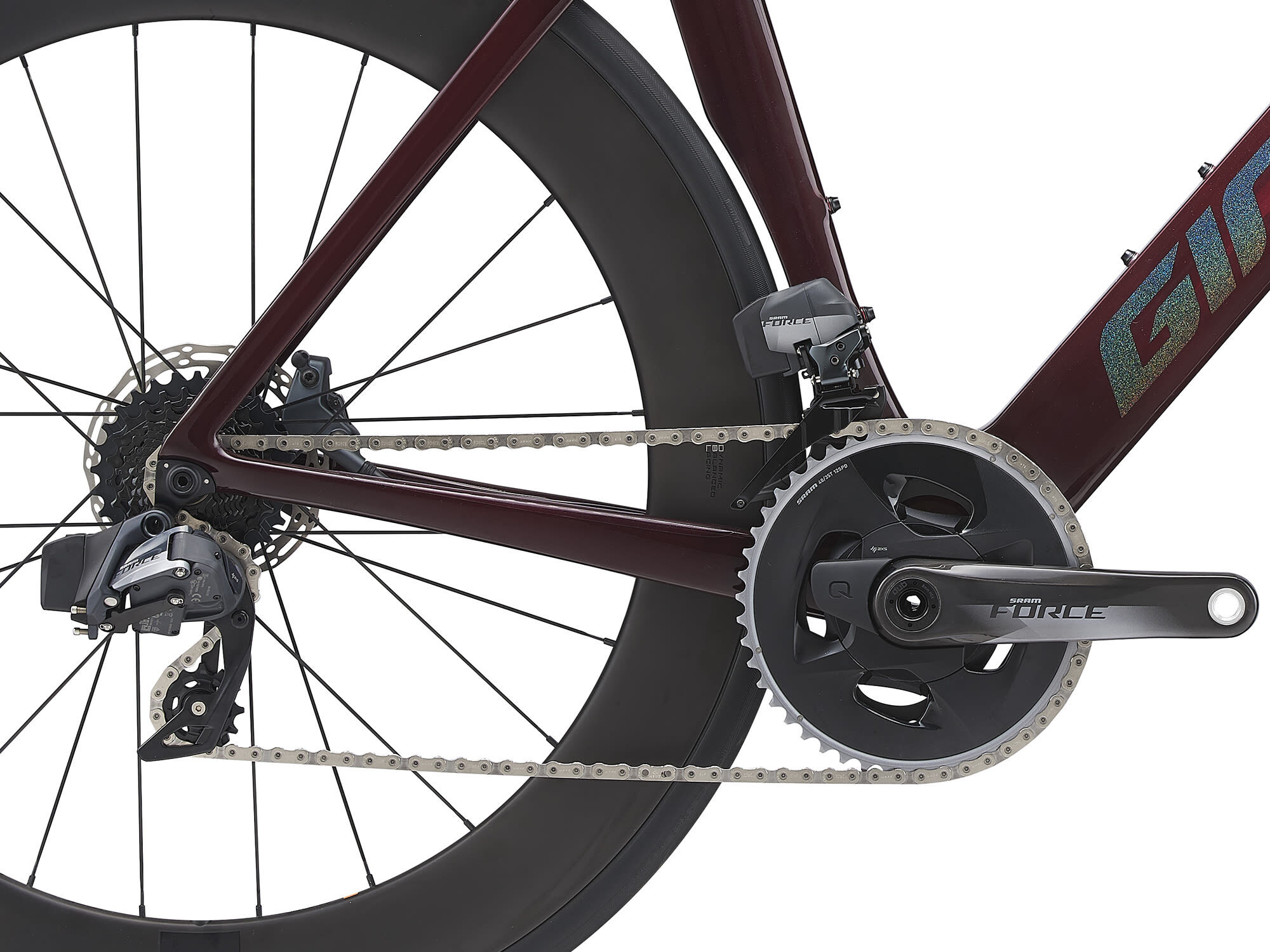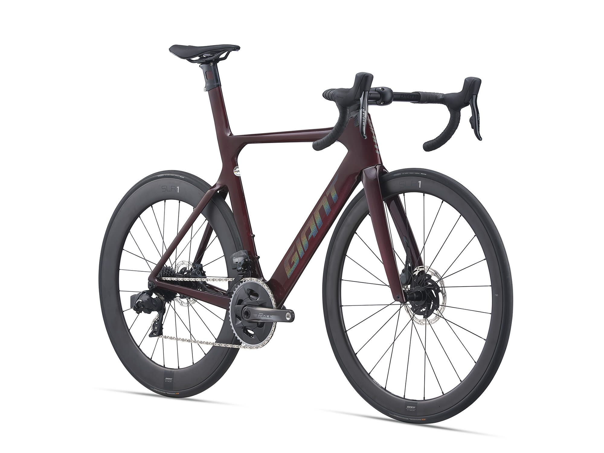 | Style | When speed is your obsession, this is your bike. You train, you put in the work, and this aero machine does the rest. Built to give you an edge when it really counts-on the attack, in the sprint, going all out-it delivers energy-saving efficiency and race-winning aero performance.Advanced SL Composite Technology - Professional Grade raw carbon fiber is woven in our composite factory to produce our lightest, stiffest and highest quality frames. This is the technology used by Giant's pro racers in almost every cycling discipline. AeroSystem Shaping Technology - Through CFD (Computational Fluid Dynamics) and wind-tunnel data, engineers optimize each tube shape to deliver superior aerodynamic performance. Tubeless System - Fewer flat tires. Greater traction. Less rolling resistance and a smoother, faster ride. Giant's Tubeless System makes it easier than ever to experience all these benefits. OverDrive 2 - The most advanced steerer tube technology in today's Giant bikes. Designed to offer unprecedented front-end steering performance, the system's oversized headset bearings (1 1/2" lower, 1 1/4" upper) and tapered steerer tube work in harmony to provide supreme steering stiffness. RideSense Ready - This frame comes prepared to accept the Giant RideSense sensor and accompanying hardware. Specifications:Sizes S, M, ML, LColours Gloss Sin City Red Frame Advanced SL-Grade Composite, integrated seatpost, disc Fork Advanced SL-Grade Composite, full-composite OverDrive 2 steerer, disc Shock Handlebar Giant Contact SLR Aero Stem Giant Contact SLR Aero Seatpost integrated design Saddle Giant Fleet SL Pedals PEDALS NOT SUPPLIED Shifters SRAM Force eTap AXS Front Derailleur SRAM Force eTap AXS Rear Derailleur SRAM Force eTap AXS Brakes SRAM Force eTap AXS hydraulic Brake Levers SRAM Force eTap AXS hydraulic Cassette SRAM Force, 12-speed, 10x28 Chain SRAM Force D1 Crankset SRAM Force D1 DUB, 35/48 with Quarq DZero power meter Bottom Bracket SRAM DUB, press fit Rims Giant SLR 1 Carbon Disc WheelSystem ( F:42mm, R:65mm) Hubs Giant SLR 1 Carbon Disc WheelSystem, 12mm thru-axle Spokes Giant SLR 1 Carbon Disc WheelSystem Tyres CADEX Race 25, tubeless,700x25c (max tyre width possible: 26mm) Extras race axle, tubeless prepared |