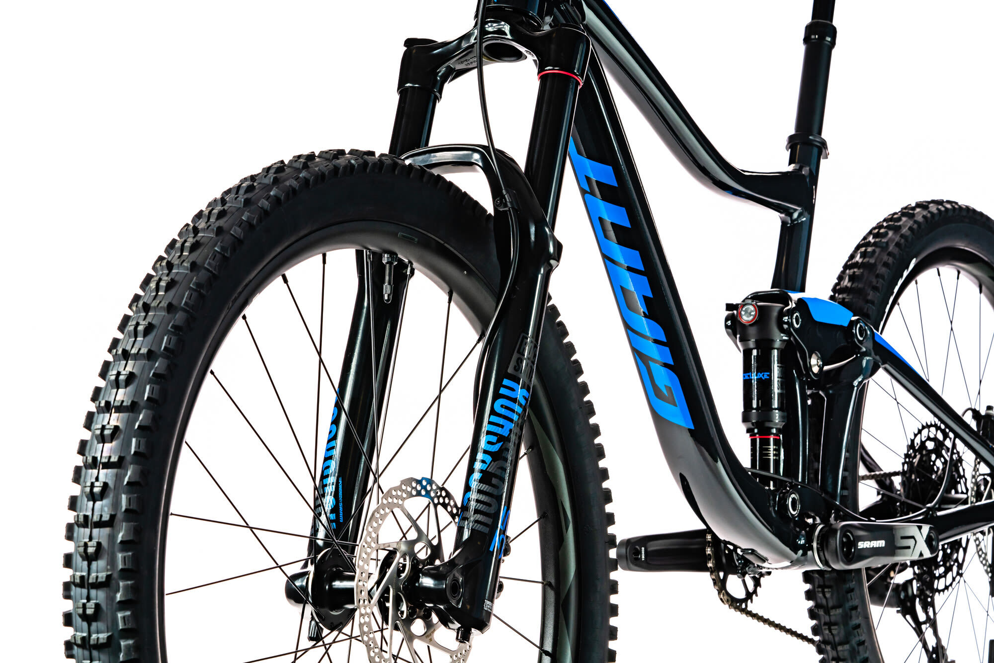 Style | When it comes to riding hard and fast on challenging off-road terrain, there's almost nothing this ambitious trail bike can't do. From steep, technical climbs to rowdy descents, you're ready for anything with Trance.ALUXX SL Aluminium Technology - This High-Performance level, state-of-the-art aluminium material is made predominantly from 6011 alloy and delivers best-in-class strength-to-weight ratios. These framesets also feature unique welding technologies for high-performance ride quality. Advanced Forged Composite Technology - A state-of-the-art high-pressure moulding process is used to produce complex-shaped carbon fibre components that are lighter, stiffer and stronger than similar components made from aluminium. This technology is used in critical performance parts such as Maestro Suspension rocker links. Maestro Suspension Technology - Four strategically positioned pivot points and two linkages all work together to create a single floating pivot for the most active, efficient and independent suspension system on the trail. OverDrive - Giant's original oversized fork steerer tube technology. Designed to provide precise front-end steering performance, the system's oversized headset bearings (1 1/4" lower and 1 1/8" upper for road, 1 1/2" lower and 1 1/8" upper for mountain) and tapered steerer tube work in conjunction to provide optimal steering stiffness. Tubeless System - Fewer flat tires. Greater traction. Less rolling resistance and a smoother, faster ride. Giant's Tubeless System makes it easier than ever to experience all these benefits. Specifications:Sizes S, M, L, XLColours Gloss Metallic Black / Metallic Blue Frame ALUXX SL-Grade Aluminum, 140mm Fork RockShox 35 Gold RL, 150mm, DebonAir, Motion Control Damping, Boost 15x110 Maxle Ultimate, tapered Shock RockShox Deluxe Select Handlebar Giant Connect Trail, 780x31.8 Stem Giant Contact Seatpost Giant Contact Switch dropper post with remote, 30.9 Saddle Giant Contact (neutral) Pedals Shifters SRAM SX Front Derailleur Rear Derailleur SRAM SX Brakes Shimano BR-MT400 [F] 180mm [R] 180mm, hydraulic Disc Brake Levers Shimano MT401 Cassette SRAM SX, 11x50 Chain SRAM SX Crankset SRAM SX Eagle DUB, 30t Bottom Bracket SRAM DUB press fit Rims Giant AM 27.5 tubeless ready sleeve-joint rim, 30mm inner width Hubs [F] Giant Tracker Performance Boost 15x110, sealed bearing [R] Giant Tracker Performance Boost 12x148, sealed bearing Spokes Sapim Tyres [F] Maxxis High Roller II 27.5x2.5 WT, EXO, TR [R] Maxxis High Roller II 27.5x2.4, EXO, TR, tubeless Extras Tubeless prepared |