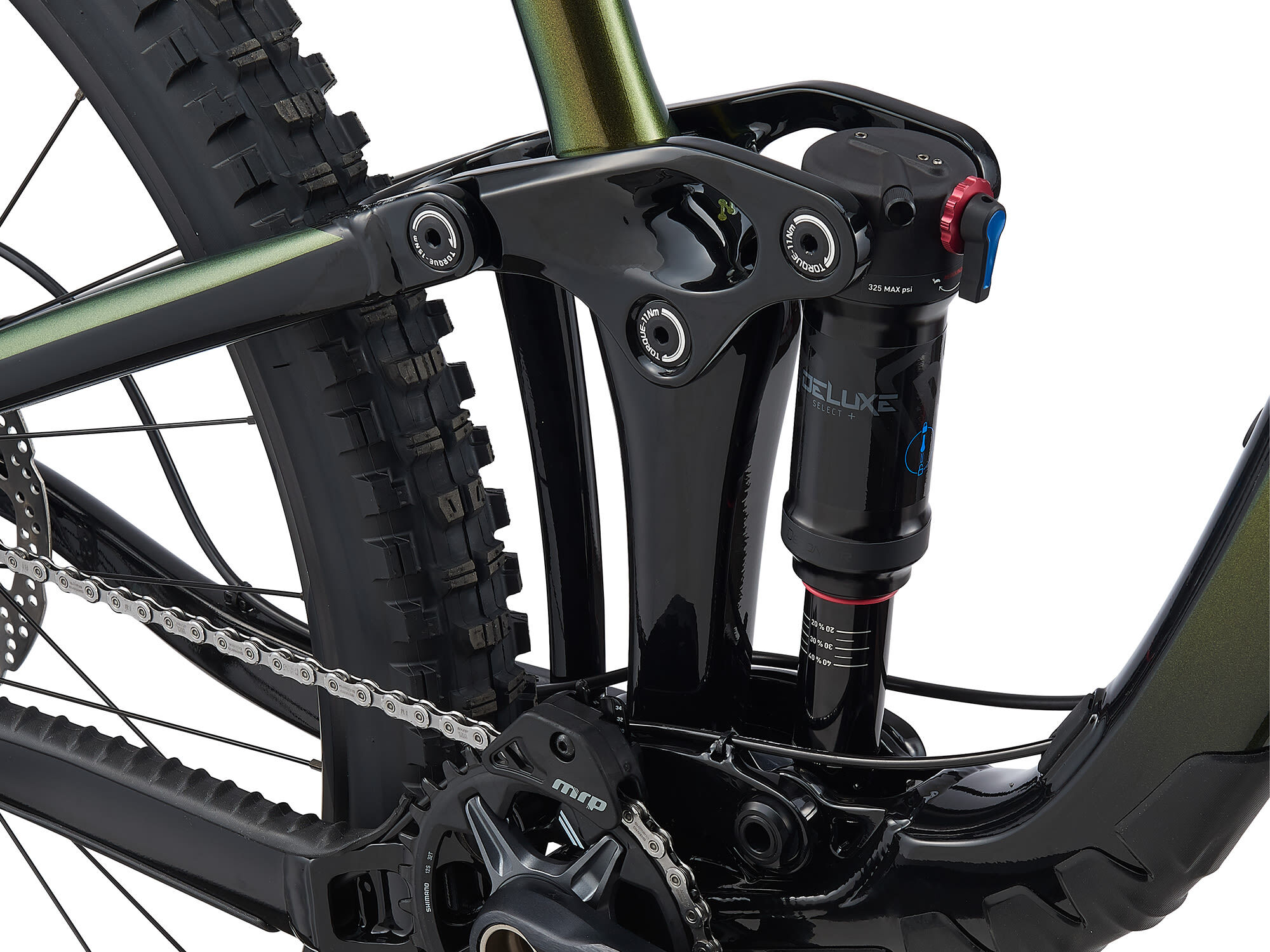 Style | Steep drops, blind lines, chunky singletrack through roots and rocks. This fierce 29er helps you tame the wildest enduro terrain with smooth suspension and confident handling.ALUXX SL Aluminium Technology - This High-Performance level, state-of-the-art aluminium material is made predominantly from 6011 alloy and delivers best-in-class strength-to-weight ratios. These framesets also feature unique welding technologies for high-performance ride quality. Advanced Forged Composite Technology - A state-of-the-art high-pressure moulding process is used to produce complex-shaped carbon fibre components that are lighter, stiffer and stronger than similar components made from aluminium. This technology is used in critical performance parts such as Maestro Suspension rocker links. Maestro Suspension Technology - Four strategically positioned pivot points and two linkages all work together to create a single floating pivot for the most active, efficient and independent suspension system on the trail. OverDrive - Giant's original oversized fork steerer tube technology. Designed to provide precise front-end steering performance, the system's oversized headset bearings (1 1/4" lower and 1 1/8" upper for road, 1 1/2" lower and 1 1/8" upper for mountain) and tapered steerer tube work in conjunction to provide optimal steering stiffness. Tubeless System - Fewer flat tires. Greater traction. Less rolling resistance and a smoother, faster ride. Giant's Tubeless System makes it easier than ever to experience all these benefits. Specifications:Sizes S, M, L, XLColours Gloss Black/Chameleon Saturn Frame ALUXX SL-Grade Aluminium, 146mm Maestro suspension Fork RockShox Yari RC, 170mm, Boost 15x110 Maxle Stealth, tapered, 42mm offset, custom tuned for Giant Shock RockShox Deluxe Select+, 205/60, custom tuned for Giant Handlebar Giant Contact TR35, 780x35mm, 20mm rise Stem Giant Contact SL 35 Seatpost Giant Contact Switch dropper post with remote, 30.9 Saddle Giant Romero Pedals PEDALS NOT SUPPLIED Shifters Shimano SLX Front Derailleur Rear Derailleur Shimano SLX Brakes Shimano MT520 Brake Levers Shimano MT501 Cassette Shimano Deore, 10-51 Chain KMC X-12 Crankset Shimano SLX, 32t with MRP AMG V2 guide Bottom Bracket Shimano, press fit Rims Giant AM 29, tubeless ready sleeve-joint rim, 30mm inner width Hubs [F] Giant Tracker Performance Boost 15x110, sealed bearing [R] Giant Tracker Performance Boost 12x148, sealed bearing Spokes Sapim Tyres [F] Maxxis Assegai 29x2.5 WT, MaxxTerra, EXO+, TR [R] Maxxis Minion DHR II 29x2.4 WT, MaxxTerra , EXO+, TR tubeless Extras tubeless prepared |