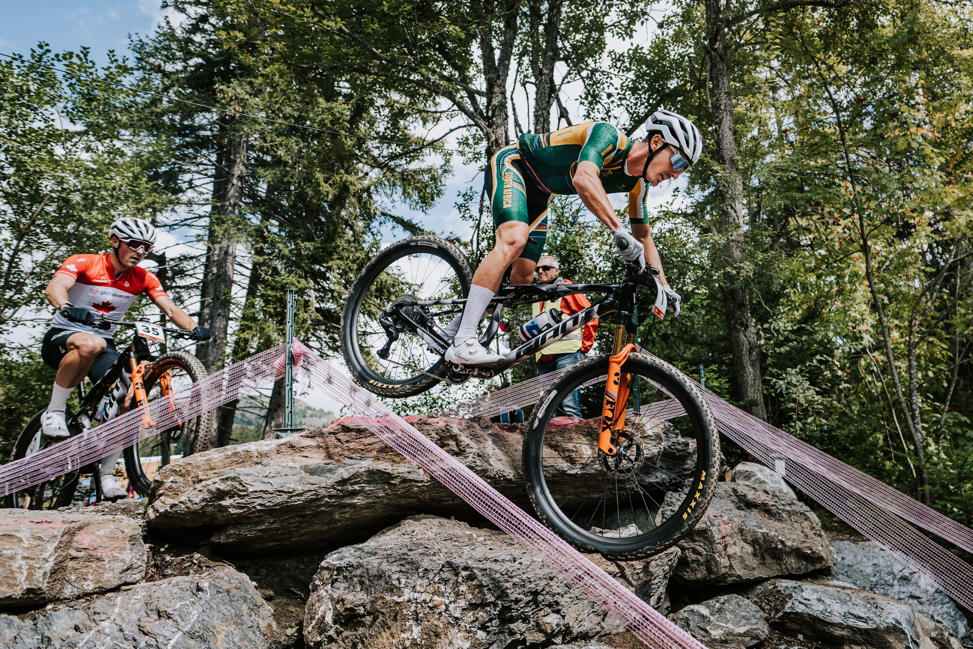 | Style | Now you can own the same superlight frameset Alan Hatherly rode to the 2025 XCO World Championship title. This limited-edition Anthem Advanced SL frameset includes the new semi-integrated FlexPoint Pro suspension system with 120mm of smooth, active rear travel. A two-position flip chip lets you adjust geometry for any racecourse or XC terrain. This exclusive offer includes just 100 framesets with the same graphic design as Hatherly's World Championship bike. Each is numbered (1 to 100) and signed by Alan Hatherly.Advanced SL Composite Technology - Professional Grade raw carbon fiber is woven in our composite factory to produce our lightest, stiffest and highest quality frames. This is the technology used by Giant's pro racers in almost every cycling discipline. Advanced Forged Composite Technology - A state-of-the-art high-pressure moulding process is used to produce complex-shaped carbon fibre components that are lighter, stiffer and stronger than similar components made from aluminium. This technology is used in critical performance parts such as Maestro Suspension rocker links. FlexPoint Pro Suspension Technology - Developed as a superlight rear suspension setup for XC bikes that demand efficiency, control and responsive handling, FlexPoint Pro is a linkage-driven, single-pivot system that delivers 100mm of rear-wheel travel. It's engineered with a full-composite swingarm that significantly reduces overall frame weight. OverDrive - Giant's original oversized fork steerer tube technology. Designed to provide precise front-end steering performance, the system's oversized headset bearings (1 1/4" lower and 1 1/8" upper for road, 1 1/2" lower and 1 1/8" upper for mountain) and tapered steerer tube work in conjunction to provide optimal steering stiffness. Specifications:Sizes S, M, L, XLColours SE World Champion Frame Advanced SL-grade composite front and rear triangles, 120mm FlexPoint Pro suspension, flip chip, 12x148mm thru-axle Shock Fox Float SL Factory, 210/50 Handlebar Giant Integrated XC, composite, 780mm, 9-degree upsweep Stem Giant Integrated XC Carbon S:60mm, M:70mm, L:70mm, XL:80mm Extras 2.4" max tire size, 34t max chainring size, MRP 1x CS chain guide |