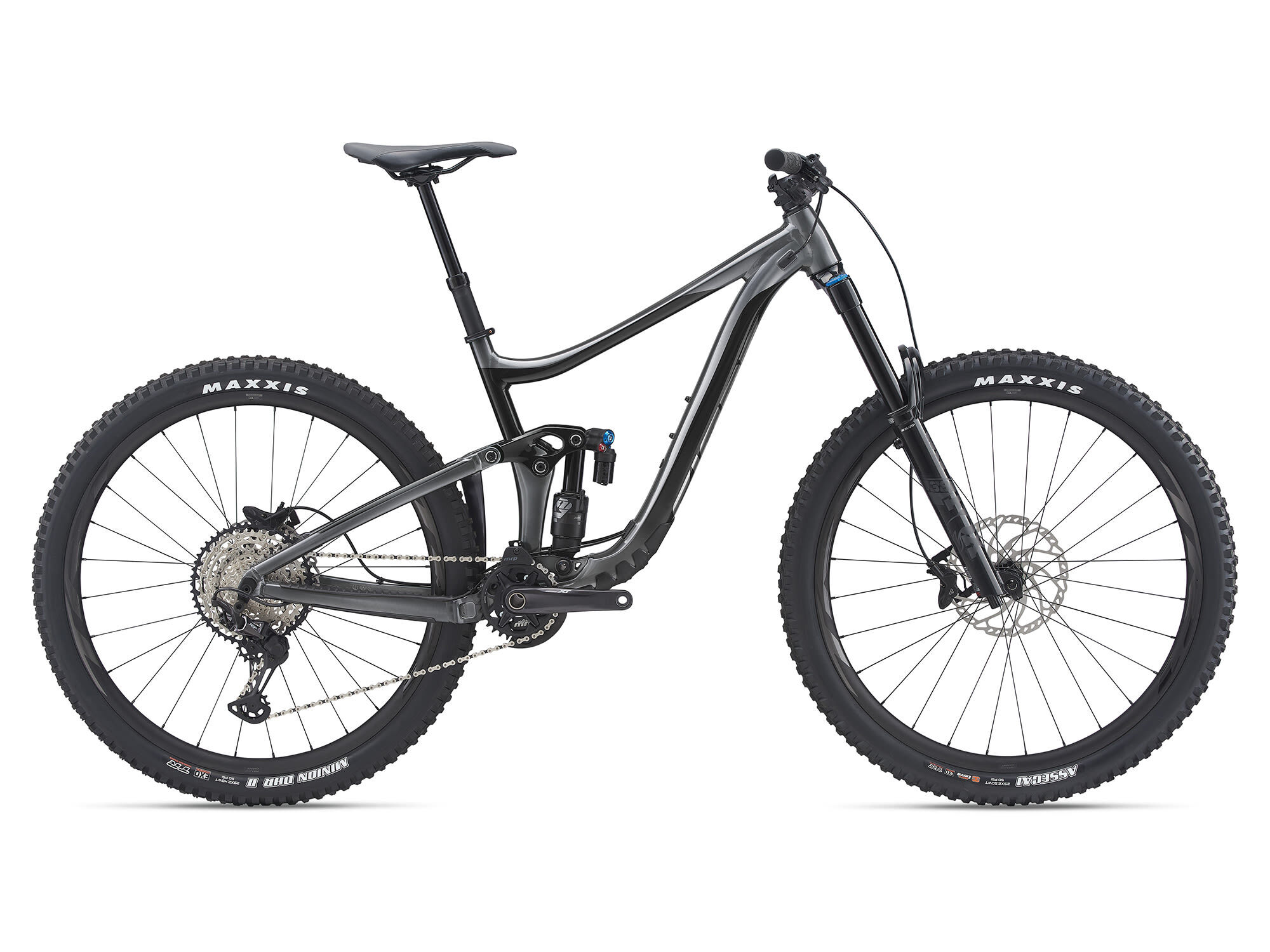 Style | Steep drops, blind lines, chunky singletrack through roots and rocks. This fierce 29er helps you tame the wildest enduro terrain with smooth suspension and confident handling.ALUXX SL Aluminium Technology - This High-Performance level, state-of-the-art aluminium material is made predominantly from 6011 alloy and delivers best-in-class strength-to-weight ratios. These framesets also feature unique welding technologies for high-performance ride quality. Advanced Forged Composite Technology - A state-of-the-art high-pressure moulding process is used to produce complex-shaped carbon fibre components that are lighter, stiffer and stronger than similar components made from aluminium. This technology is used in critical performance parts such as Maestro Suspension rocker links. Maestro Suspension Technology - Four strategically positioned pivot points and two linkages all work together to create a single floating pivot for the most active, efficient and independent suspension system on the trail. OverDrive - Giant's original oversized fork steerer tube technology. Designed to provide precise front-end steering performance, the system's oversized headset bearings (1 1/4" lower and 1 1/8" upper for road, 1 1/2" lower and 1 1/8" upper for mountain) and tapered steerer tube work in conjunction to provide optimal steering stiffness. Tubeless System - Fewer flat tires. Greater traction. Less rolling resistance and a smoother, faster ride. Giant's Tubeless System makes it easier than ever to experience all these benefits. Specifications:Sizes S, M, L, XLColours Gloss Black Ti/Black Frame ALUXX SL-Grade Aluminium, 146mm Maestro suspension Fork Fox 38 Performance Elite GRIP2, 170mm, 110x15 Kabolt, tapered, 44mm offset, custom tuned for Giant Shock Fox X2 Performance, 205/60, custom tuned for Giant Handlebar Giant Contact SL TR35, 800x35mm, 20mm rise Stem Giant Contact SL 35 Seatpost Giant Contact Switch dropper post with remote, 30.9 Saddle Giant Romero Pedals PEDALS NOT SUPPLIED Shifters Shimano Deore XT Front Derailleur Rear Derailleur Shimano Deore XT Brakes Shimano Deore Brake Levers Shimano Deore Cassette Shimano SLX, 10-51 Chain KMC X-12 Crankset Shimano Deore XT, 32t with MRP AMG V2 guide Bottom Bracket Shimano, press fit Rims Giant TR-1 29 WheelSystem Hubs Giant TR-1 29 WheelSystem Spokes Giant TR-1 29 WheelSystem Tyres [F] Maxxis Assegai 29x2.5 WT, MaxxTerra, EXO+, TR [R] Maxxis Minion DHR II 29x2.4 WT, MaxxTerra , EXO+, TR tubeless Extras tubeless prepared |