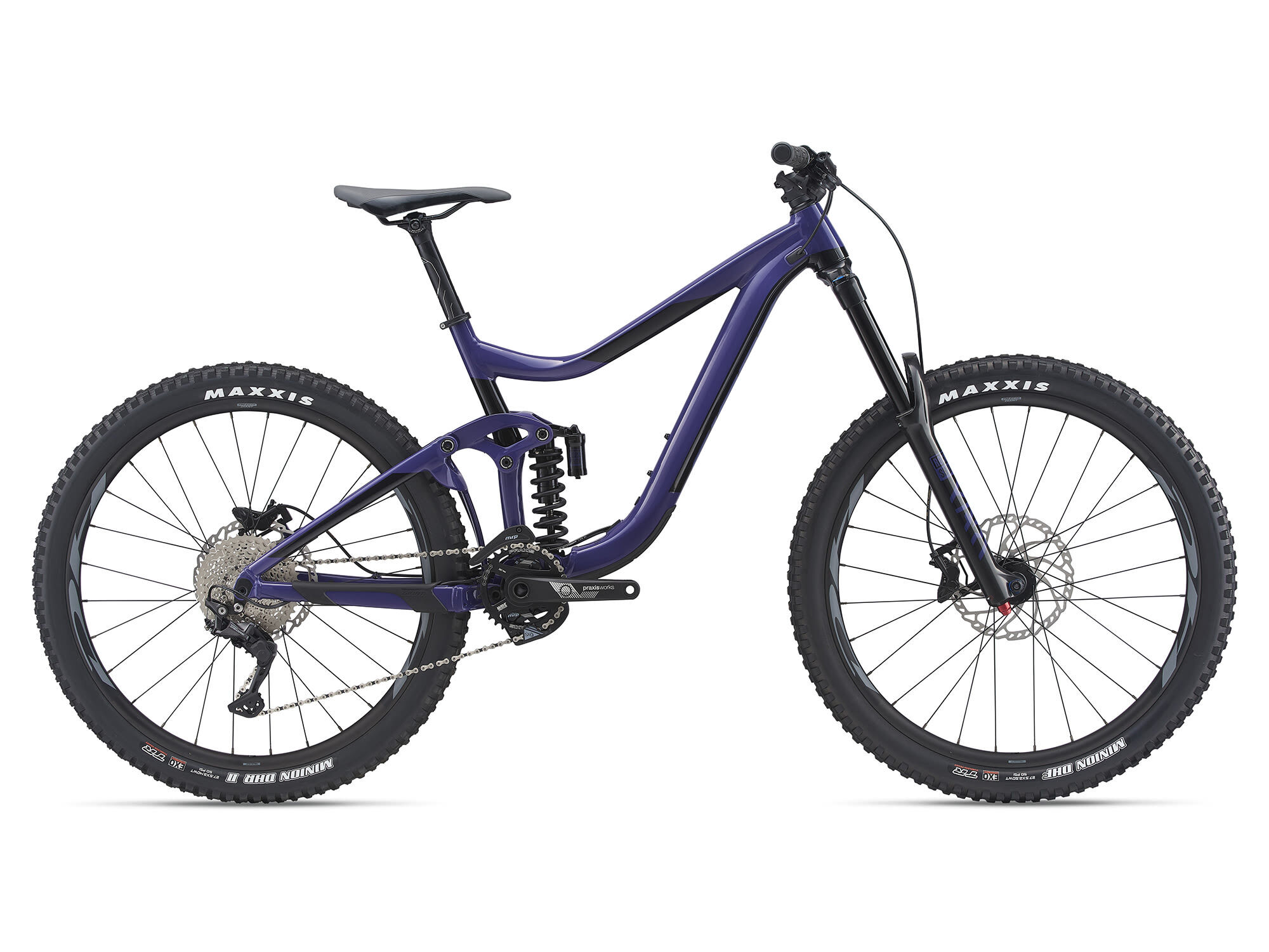 Style | From the bike park to enduro tracks and steep singletrack shredding, this all-mountain bruiser has swagger to spare. The lightweight, super-stiff aluminium frame is long and low, and its Maestro suspension helps you float through the rough stuff.ALUXX SL Aluminium Technology - This High-Performance level, state-of-the-art aluminium material is made predominantly from 6011 alloy and delivers best-in-class strength-to-weight ratios. These framesets also feature unique welding technologies for high-performance ride quality. Advanced Forged Composite Technology - A state-of-the-art high-pressure moulding process is used to produce complex-shaped carbon fibre components that are lighter, stiffer and stronger than similar components made from aluminium. This technology is used in critical performance parts such as Maestro Suspension rocker links. Maestro Suspension Technology - Four strategically positioned pivot points and two linkages all work together to create a single floating pivot for the most active, efficient and independent suspension system on the trail. OverDrive - Giant's original oversized fork steerer tube technology. Designed to provide precise front-end steering performance, the system's oversized headset bearings (1 1/4" lower and 1 1/8" upper for road, 1 1/2" lower and 1 1/8" upper for mountain) and tapered steerer tube work in conjunction to provide optimal steering stiffness. Tubeless System - Fewer flat tires. Greater traction. Less rolling resistance and a smoother, faster ride. Giant's Tubeless System makes it easier than ever to experience all these benefits. Specifications:Sizes S, M, L, XLColours Gloss Astral Aura/Black Frame ALUXX SL-Grade Aluminium, 160mm Maestro suspension Fork RockShox Yari RC DebonAir, 180mm, Boost 15x110 Maxle Stealth, tapered, 37mm offset, custom tuned for Giant Shock RockShox Super Deluxe Coil Select, 205/62.5, custom tuned for Giant Handlebar Giant Contact SL TR35, 800x35mm, 20mm rise Stem Giant Contact SL 35 Seatpost Giant Contact SL, zero offset, 30.9 Saddle Giant Romero Pedals PEDALS NOT SUPPLIED Shifters Shimano Deore Front Derailleur Rear Derailleur Shimano Deore Brakes Shimano MT520 Brake Levers Shimano MT501 Cassette Shimano Deore, 11x42 Chain KMC X10 Crankset Praxis Cadet, 34t, Giant custom design with MRP CS guide Bottom Bracket Praxis BB-90, press fit Rims Giant DH 27.5 tubeless ready sleeve-joint rim, 27mm inner width Hubs [F] Giant Tracker Performance Boost 15x110, sealed bearing [R] Giant Tracker Performance Boost 12x148, sealed bearing Spokes Sapim Tyres [F] Maxxis Minion DHF 27.5x2.5 WT, folding , EXO, TR [R] Maxxis Minion DHRII 27.5x2.4 WT, folding, EXO, TR, tubeless Extras tubeless prepared |