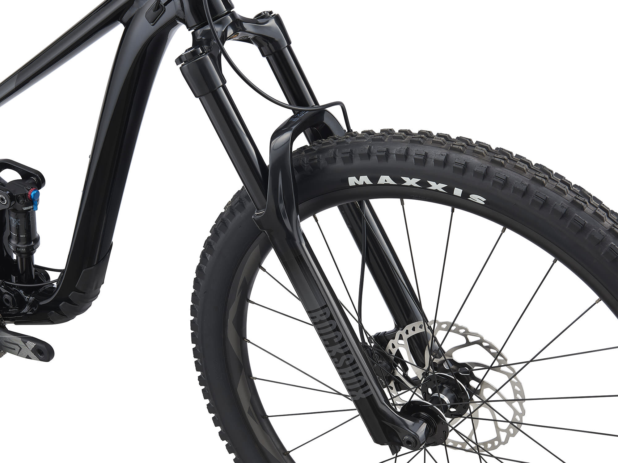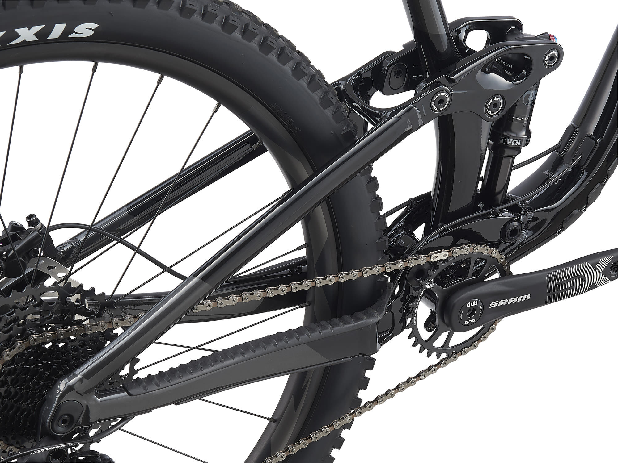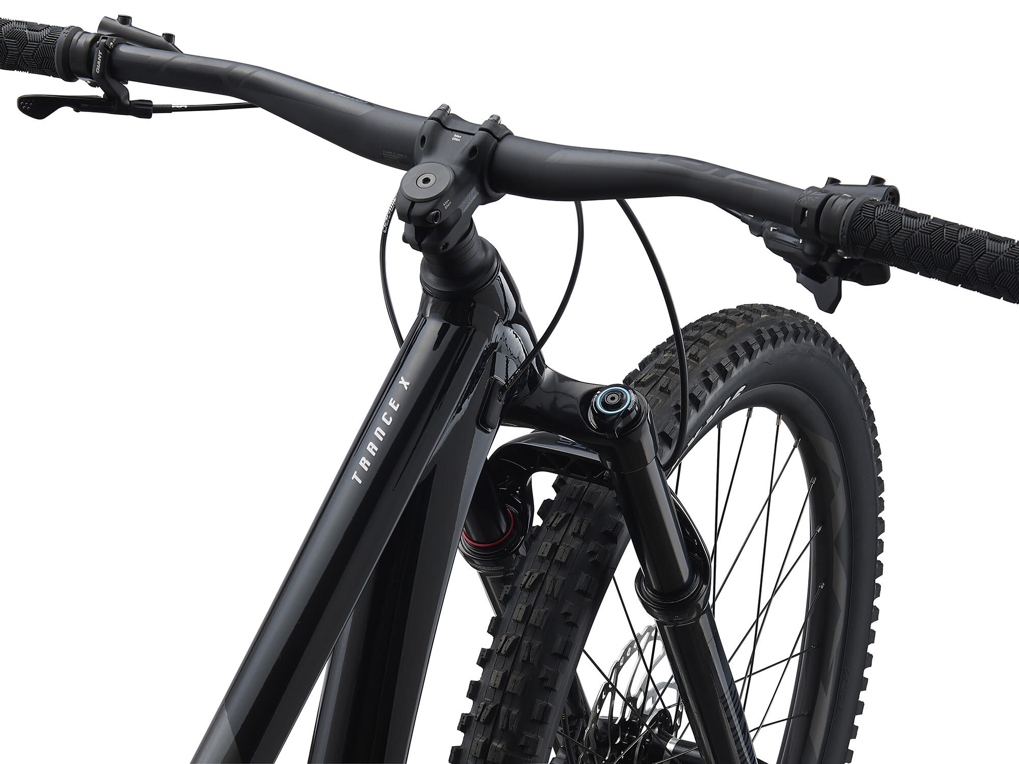 Style | Chunky rock gardens, gnarly roots and steep, technical climbs. The all-new Trance X 29 is for those who consider the hardest section of trail their favourite part of the ride. With longer suspension travel and adjustable geometry, this aluminium trail slayer delivers hard-charging singletrack fun.Advanced Forged Composite Technology - A state-of-the-art high-pressure moulding process is used to produce complex-shaped carbon fibre components that are lighter, stiffer and stronger than similar components made from aluminium. This technology is used in critical performance parts such as Maestro Suspension rocker links. ALUXX SL Aluminium Technology - This High-Performance level, state-of-the-art aluminium material is made predominantly from 6011 alloy and delivers best-in-class strength-to-weight ratios. These framesets also feature unique welding technologies for high-performance ride quality. Flip Chip - Maestro - The flip chip allows riders to quickly adjust the geometry of their Maestro-equipped mountain bike to better suit how and where they ride. It lets riders change the headtube/seattube angles and bottom bracket height via eccentric (offset, two-position) hardware located on the upper rocker arm. Maestro Suspension Technology - Four strategically positioned pivot points and two linkages all work together to create a single floating pivot for the most active, efficient and independent suspension system on the trail. OverDrive - Giant's original oversized fork steerer tube technology. Designed to provide precise front-end steering performance, the system's oversized headset bearings (1 1/4" lower and 1 1/8" upper for road, 1 1/2" lower and 1 1/8" upper for mountain) and tapered steerer tube work in conjunction to provide optimal steering stiffness. PowerCore - A massively oversized bottom-bracket/chainstay area features a fully integrated, 86-millimeter wide bottom-bracket design (92-millimeter wide for off-road bikes). Asymmetric chainstays provide additional stiffness on the driveside and stability on the non-driveside. Tubeless System - Fewer flat tires. Greater traction. Less rolling resistance and a smoother, faster ride. Giant's Tubeless System makes it easier than ever to experience all these benefits. Specifications:Sizes S, M, L, XLColours Gloss Black/Black Chrome Frame ALUXX SL-Grade AluminIum front and rear triangles, 135mm Maestro suspension, flip chip Fork RockShox 35 Gold RL, 150mm, 44mm offset, 15x110 Maxle Stealth, custom tuned for Giant Shock Fox Float DPS Performance, 185/55, custom tuned for Giant Handlebar Giant Contact TR35, 780x35mm, 20mm rise Stem Giant Contact SL 35 Seatpost Giant Contact Switch dropper with remote, 30.9 Saddle Giant Romero Pedals PEDALS NOT SUPPLIED Shifters SRAM SX Eagle Front Derailleur Rear Derailleur SRAM SX Eagle Brakes Shimano MT420 Brake Levers Shimano MT401 Cassette SRAM SX Eagle, 11x50 Chain SRAM Crankset SRAM SX Eagle, 30t Bottom Bracket SRAM DUB, press fit Rims Giant AM 29, alloy Hubs Giant Boost, sealed bearing Spokes Sapim Tyres [F] Maxxis Minion DHF 29x2.5, EXO, TR [R] Maxxis Dissector 29x2.4, EXO, TR, tubeless Extras tubeless prepared |