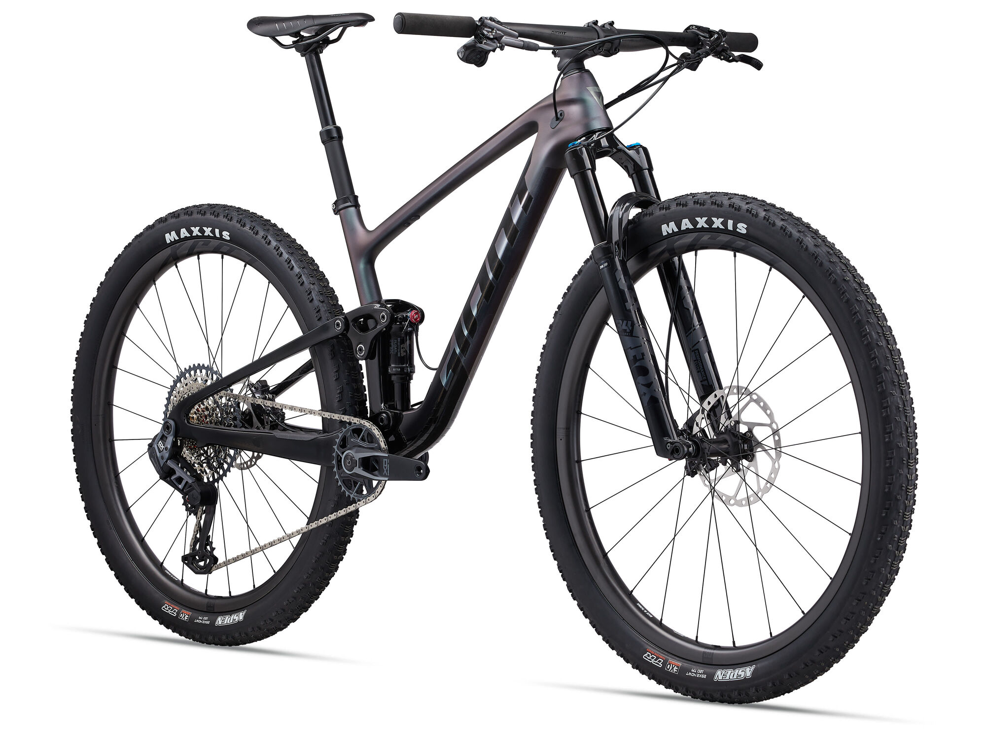 Style | Built for modern XC racing, this full-composite flyer tackles steep singletrack climbs and technical descents with speed and control. With FlexPoint Pro rear suspension and race-ready geometry, it puts you at the front of the pack.Advanced Composite Technology - Giant's High Performance Grade raw carbon material is used to produce this custom frame material in our own composite factory with a high stiffness-to-weight ratio. The front triangle of these framesets is assembled and molded as one continuous piece in a proprietary manufacturing process called Modified Monocoque Construction. Advanced Forged Composite Technology - A state-of-the-art high-pressure moulding process is used to produce complex-shaped carbon fibre components that are lighter, stiffer and stronger than similar components made from aluminium. This technology is used in critical performance parts such as Maestro Suspension rocker links. OverDrive - Giant's original oversized fork steerer tube technology. Designed to provide precise front-end steering performance, the system's oversized headset bearings (1 1/4" lower and 1 1/8" upper for road, 1 1/2" lower and 1 1/8" upper for mountain) and tapered steerer tube work in conjunction to provide optimal steering stiffness. Tubeless System - Fewer flat tires. Greater traction. Less rolling resistance and a smoother, faster ride. Giant's Tubeless System makes it easier than ever to experience all these benefits. FlexPoint Pro Suspension Technology - Developed as a superlight rear suspension setup for XC bikes that demand efficiency, control and responsive handling, FlexPoint Pro is a linkage-driven, single-pivot system that delivers 100mm of rear-wheel travel. It's engineered with a full-composite swingarm that significantly reduces overall frame weight. Specifications:Sizes S, M, L, XLColours Gloss Carbon Smoke/Matte Dark Iridescent Frame Advanced-grade composite front and rear triangles, 100mm FlexPoint Pro suspension, 12x148mm thru-axle Fork Fox 34 Float SC Performance Elite remote, 110mm, FIT4 damper, Boost 15x110 Kabolt, 44mm offset, custom tuned for Giant Shock Fox Float SL Performance Elite, three-position remote, 165/45, custom tuned for Giant Handlebar Giant Contact SLR XC Flat, composite, 760x35mm Grips Giant XC Pro S:32mm, M:32mm, L:34mm, XL:34mm Stem Giant Contact SL XC, 35mm S:60mm, M:70mm, L:70mm, XL:70mm Seatpost Giant Contact Switch Adjustable dropper, remote S: 110-140mm travel / 30.9 x 395mm M: 110-140mm travel / 30.9 x 395mm L: 110-140mm travel / 30.9 x 395mm XL: 110-140mm travel / 30.9 x 395mm Saddle Fi'zi:k Antares R5 with K:ium rails Pedals PEDALS NOT SUPPLIED Shifters SRAM AXS Pod, discrete clamp, 1x12 Front Derailleur Rear Derailleur SRAM GX Eagle Transmission Brakes Shimano Deore XT BR-M8100, hydraulic, Shimano RT-64 rotors [F]180mm, [R]160mm Brake Levers Shimano Deore XT BL-M8100 Cassette SRAM GX Eagle Transmission, 10x52 Chain SRAM GX Eagle Transmission Crankset SRAM XO Eagle Transmission with power meter, 32t, 55mm chainline S:170mm, M:175mm, L:175mm, XL:175mm Bottom Bracket SRAM DUB, press fit Rims Giant XCR 1 30 Carbon WheelSystem, 30mm inner width Hubs [F] Giant XC alloy, CenterLock, [R] Giant XC alloy, DT350 54t ratchet driver, CenterLock Spokes Sapim Laser Tyres Maxxis Aspen 29x2.4, foldable, 120tpi, TLR, EXO, tubeless Extras Factory tubeless set up, Giant/MRP CS chain guide Max Tyre Clearance 2.4" Max Chainring Size 34t |