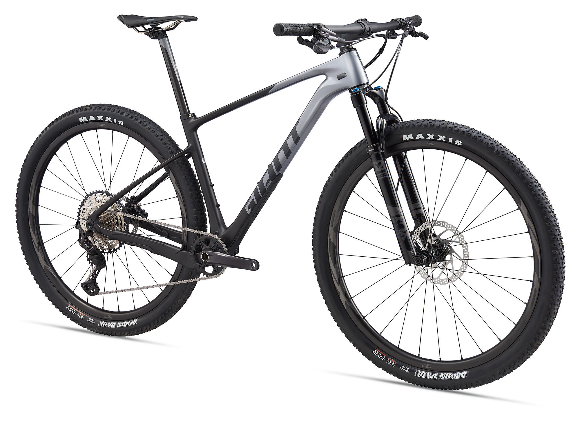 | Style | For pure XC speed, this carbon hardtail 29er delivers responsive ride quality and maximum efficiency on fast, flowy singletrack. It's a great choice for your weekly race series, an off-road marathon, or burning up your local XC trails.Advanced Composite Technology - Giant's High Performance Grade raw carbon material is used to produce this custom frame material in our own composite factory with a high stiffness-to-weight ratio. The front triangle of these framesets is assembled and molded as one continuous piece in a proprietary manufacturing process called Modified Monocoque Construction. OverDrive - Giant's original oversized fork steerer tube technology. Designed to provide precise front-end steering performance, the system's oversized headset bearings (1 1/4" lower and 1 1/8" upper for road, 1 1/2" lower and 1 1/8" upper for mountain) and tapered steerer tube work in conjunction to provide optimal steering stiffness. Tubeless System - Fewer flat tires. Greater traction. Less rolling resistance and a smoother, faster ride. Giant's Tubeless System makes it easier than ever to experience all these benefits. Specifications:Sizes M, L, XLColours Gloss Charcoal / Matte Carbon Frame Advanced-Grade Composite Fork Fox 32 Float SC Performance 29", 100mm, GRIP damper, two-position remote lockout, Boost 15x110 QR, tapered Shock Handlebar Giant Contact SL XC Flat, 780x31.8 Stem Giant Contact Seatpost Giant Contact, composite, 30.9 Saddle Giant Contact SL (forward) Pedals Shifters Shimano Deore XT Front Derailleur Rear Derailleur Shimano Deore XT Brakes Shimano Deore XT Brake Levers Shimano Deore XT Cassette Shimano SLX, 10x51 Chain Shimano Crankset Shimano Deore XT, 32t Bottom Bracket Shimano, press fit Rims Giant XCR-1 29 Composite WheelSystem Hubs Giant XCR-1 29 WheelSystem Spokes Giant XCR-1 29 WheelSystem Tyres Maxxis Recon Race 29x2.25, foldable, TLR, , EXO, tubeless Extras Tubeless prepared |
