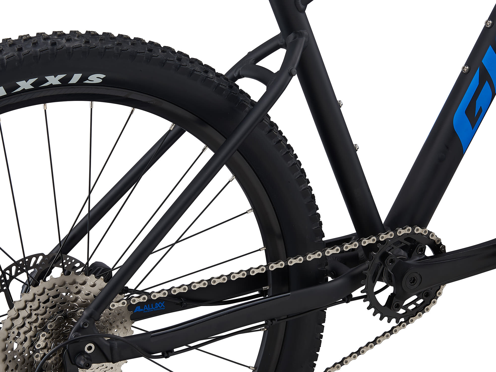 | Style | Get a feel for the trail with this all-new aluminium hardtail made for aspiring singletrack riders. It features stable, fast-rolling 29-inch or more-playful 27.5-inch wheels so you can push the pace on climbs and let loose on the descents.ALUXX Aluminium Technology - This Performance level frame material features 6061 alloy with single-butted tubes to produce strong, lightweight framesets for a variety of different bikes and riding styles.Specifications:Sizes 27.5: XS,S,M,L 29: S,M,L,XL,XXLColours 27.5": Matte Desert Sage / Matte Black, 29": Matte Black Frame ALUXX-Grade Aluminium, disc. Compatible with fenders & kickstand Fork RockShox Judy TK coil spring OR Giant SXC32-2 R, 100mm or 80mm travel, QR, steel steerer, rebound adjust and lock out Shock Handlebar Giant Connect Trail, 780x31.8 Stem Giant Sport, 7-degree Seatpost Giant Sport, 30.9 Saddle Giant custom Pedals MTB caged Shifters Shimano Deore Front Derailleur Rear Derailleur Shimano Deore Brakes Tektro TKD 143, hydraulic Brake Levers Tektro TKD 143, hydraulic Cassette Shimano Deore, 11x42 Chain KMC X10 Crankset ProWheel Charm, 30t or 32t Bottom Bracket cartridge Rims Giant GX03V 29 or 27.5, alloy, double wall, 21mm inner width Hubs [F]Giant Tracker Giant Sport QR, loose ball [R] Giant Tracker Giant Sport QR, loose ball Spokes stainless, 14g Tyres Maxxis Rekon 27.5 or 29x2.4, wire bead (max tyre width possible: 2.4") Fender/Chainguard Compatible with our clip on mudguards for mountain bikes. For more complete or full-length mudguard solutions, please speak to your local Giant retailer. |