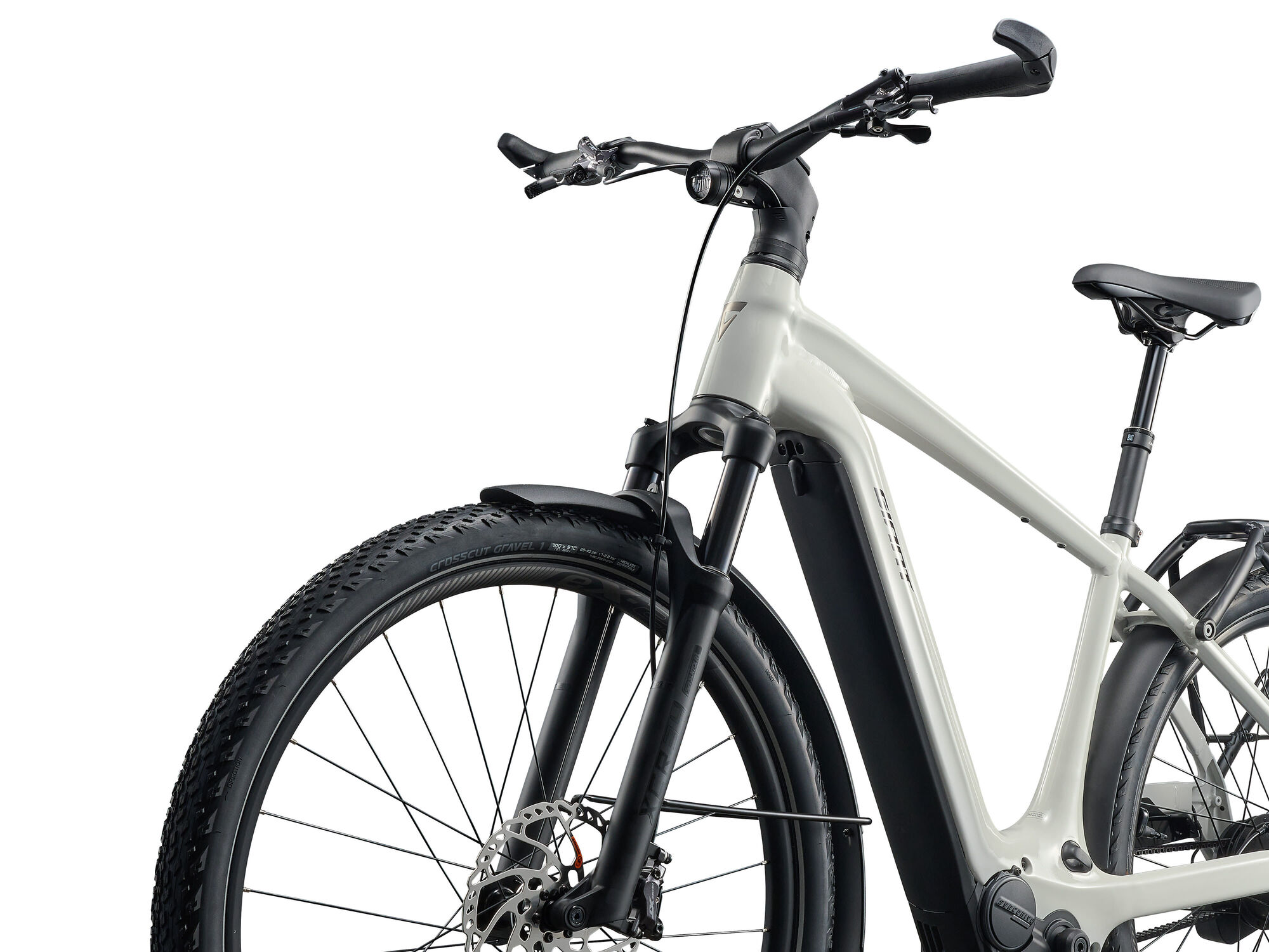 Style | Built for adventure, the Explore E+ turns commutes and escapes into open horizons. With versatile design and seamless integration, it delivers smooth support, confidence, and freedom to ride farther-wherever the journey leads.Specifications:Motor Giant SyncDrive Pro2 85Nm PedalPlus 6-Sensor technologyController Giant RideControl Go 2 Giant RideControl Ergo4 Dual Remotes Display Giant RideDash EVO 2.0, high-angle visibility, 3" full color LCD display, on-board navigation Battery Giant EnergyPak 800Wh, 22700 Lithium cell technology, Aluminium casing with highest safety standard (EN50604) Range CO2 Neutral production Giant EnergyPak Plus 250 range extender compatible Charger Giant EnergyPak 4A smart charger compact, 60% charge in 2:30h Connectivity Giant RideControl App enabled ANT+ wireless display signal with e-bike profile Sizes M, L, XL, XXL Colours Snow Drift Frame Gen 4 ALUXX aluminum, Overdrive 1.8" - 1.5" head tube, integrated battery, integrated KSA40 kickstand mount Fork SR Suntour XCR34 2CR air boost 100mm travel 15x110mm AH axle Shock n/a Handlebar Giant Contour Comfort Riser 31.8x720mm Grips RideControl Ergo4 Integrated Trekking (w/Bar-end) Stem Giant Contour EVO integrated 16a?degree NEW (S/M:80mm L/XL/XXL 100mm) Seatpost Giant Contact Switch Dropper Seatpost (100mm Travel) Saddle Selle Royal Vivo Ergo Moderate Unisex Pedals VPE-537 PP Platform Pedal Shifters Enviolo Trekking Automatiq Integrated Rear Derailleur Enviolo Trekking Automatiq Modular 40T Spline Brakes Shimano Deore XT, BR-M8120, hydraulic disc, 4-piston, 203mm [F] 180mm [R] Brake Levers Shimano Deore XT Cassette Gates CDX stainless steel 22T rear sprocket Chain Gates CDX Carbon Drive 120T CenterTrack belt Crankset Forged alloy spider w/chainguard BCD 104, Gates CDX front sprocket 46T Forged alumium crank arms Rims Giant eX25, Tubeless Ready, 622x25 Aluminium Hubs Giant eTracker Boost 6-bolt disc 15x110mm [F] Enviolo Trekking Automatiq Modular 40T spline 6-bolt disc 148mm [R] Spokes Stainless steel, e-bike optimized Tyres Crosscut Gravel 1, 700x57c, Foldable, Tubeless Ready, w/ Reflection Strip Extras HMI 2.0 including E locking and Apple Find My. Aegis Radar included, on-board radar warning system, Aegis tyre Checker. On-board Tyre Pressure Management System (TPMS) Lighting Supernova Mini 3 [F] Rear Rack Integrated tail light [R] Lock ABUS Xplus battery lock Carrier MIK rack. System bag & basket compatible Tail light integrated Aegis Radar spec-in Fender/Chainguard Alluminum Combined Maximum Load Limit Type 3 150kg |