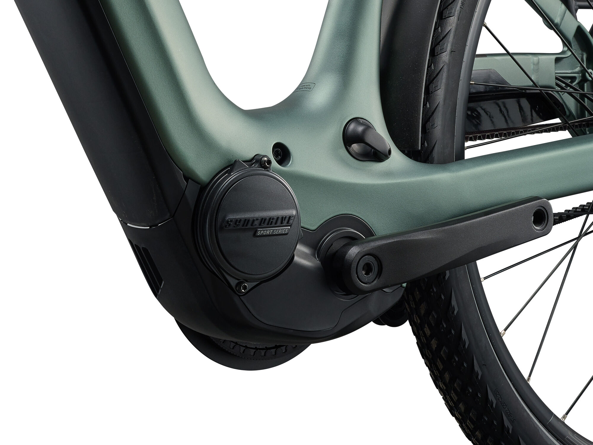 Style | Built for adventure, the Explore E+ turns commutes and escapes into open horizons. With versatile design and seamless integration, it delivers smooth support, confidence, and freedom to ride farther-wherever the journey leads.Specifications:Motor Giant SyncDrive Sport2, 75Nm PedalPlus 6-sensor technologyController Giant RideControl Go 2 Giant RideControl Ergo4 Single Remote Display Giant RideDash EVO 2.0, high-angle visibility, 3" full color LCD display, on-board navigation Battery Giant EnergyPak Smart 625Wh, Aluminium casing with highest safety standard (EN50604) Range CO2 Neutral production Giant EnergyPak Plus 250 range extender compatible Charger Giant EnergyPak 4A smart charger compact, 60% charge in 2:30h Connectivity Giant RideControl App enabled ANT+ wireless display signal with e-bike profile Sizes M, L, XL, XXL Colours Alpine Green Frame Gen 4 ALUXX aluminum, Overdrive 1.8" - 1.5" head tube, integrated battery, integrated KSA40 kickstand mount Fork SR Suntour XCR34 2CR coil boost 100mm travel 15x110mm AH axle Shock n/a Handlebar Giant Contour Comfort Riser 31.8x720mm Grips RideControl Ergo4 Integrated Trekking (w/Bar-end) Stem Giant Contour EVO integrated 16a?degree NEW (S/M:80mm L/XL/XXL 100mm) Seatpost Giant Contact Switch Dropper Seatpost (100mm Travel) Saddle Selle Royal Vivo Ergo Moderate Unisex Pedals VPE-537 PP Platform Pedal Shifters Enviolo Pure Rear Derailleur Enviolo Manual Modular 40T Spline Brakes Shimano MT200, hydraulic disc, 180mm [F/R] Brake Levers Shimano BL-MT200 Cassette Gates CDC stainless steel 22T rear sprocket Chain Gates CDC Carbon Drive 120T CenterTrack belt Crankset Forged alloy spider w/chainguard BCD 104, Gates CDC front sprocket 46T Forged alumium crank arms Rims Giant eX25, Tubeless Ready, 622x25 Aluminium Hubs Giant eTracker 6-bolt disc 15x110mm [F] Enviolo Manual Modular 40T spline 6-bolt disc [R] Spokes Stainless steel, e-bike optimized Tyres Crosscut Gravel 2, 700x57c, Wire Bead, Tubeless Ready, w/ Reflection Strip Extras HMI 2.0 including E locking and Apple Find My. Aegis tyre Checker. On-board Tyre Pressure Management System (TPMS) Lighting Recon E HL 50 StVZO [F] Rear Rack Integrated tail light [R] Lock ABUS Xplus battery lock Carrier MIK rack. System bag & basket compatible Tail light integrated Aegis Radar compatible Fender/Chainguard Alluminum Combined Maximum Load Limit Type 3 150kg |