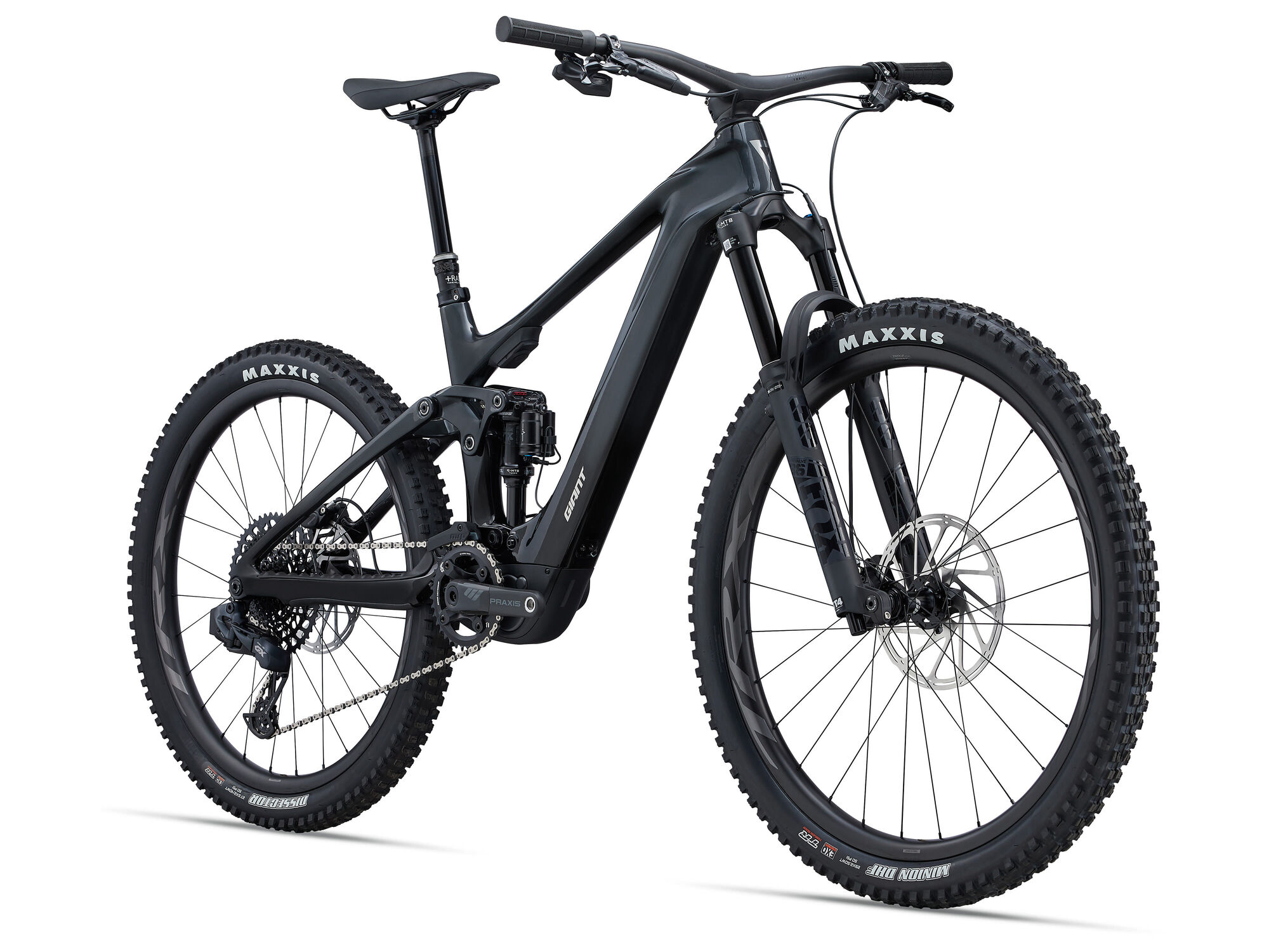 Style | Accelerate up climbs, float through rock gardens, experience more power, agility and control with this lightweight, full-suspension E-MTB. A new ultra-slim battery minimises weight so you can ride technical trails the way you always dreamed of.Advanced Composite Technology - Giant's High Performance Grade raw carbon material is used to produce this custom frame material in our own composite factory with a high stiffness-to-weight ratio. The front triangle of these framesets is assembled and molded as one continuous piece in a proprietary manufacturing process called Modified Monocoque Construction. E+ System - E+ System combines electric power with human power to produce a smart, natural and powerful E-bike riding experience. It's an integrated group of technologies that includes our RideControl control units, EnergyPak battery systems and SyncDrive motors. For more information, check out the link below. Maestro Suspension Technology - Four strategically positioned pivot points and two linkages all work together to create a single floating pivot for the most active, efficient and independent suspension system on the trail. SyncDrive - Revolutionize your ride with an E-bike motor system that adapts to you. Experience natural momentum in motion as SyncDrive technology enhances every moment of your journey, opening new horizons for every rider. Smart Assist - All SyncDrive motors have Smart Assist technology, which adjusts the support to match the rider's needs. By using information from multiple sensors, both rider input and terrain feedback are used to determine the optimal amount of pedaling assistance. SyncDrive is the only e-bike system that utilizes both rider input and terrain feedback. It gives you a smooth, natural riding experience with ample power when you need it, while also conserving power when you don't need as much. Energypak - Giant's latest EnergyPak battery systems feature streamlined designs that are integrated with the E-bike for a sleek and modern profile. Giant E-bikes offer several different EnergyPak options including the EnergyPak Smart and EnergyPak. Each one is designed to optimize the E-bike experience for a specific style of riding. RideControl Go - Available on premium Giant E-Bikes, RideControl Go features a multipurpose button integrated into the top tube. Colored LEDs allow you to switch power modes from the top tube and keep a clean handlebar setup. The lights also display battery level and support mode. RideControl Ergo 3 - This updated control system features clean buttons that are integrated with the handlebar grips. You can install the three-button control on the left or right side, making it easy to switch power modes. You also have the option of adding a second control on the other side. Using the RideControl App, you can configure it to your own personal preferences. Flip Chip - Maestro - The flip chip allows riders to quickly adjust the geometry of their Maestro-equipped mountain bike to better suit how and where they ride. It lets riders change the headtube/seattube angles and bottom bracket height via eccentric (offset, two-position) hardware located on the upper rocker arm. Specifications:Motor Giant SyncDrive Pro2 85Nm, powered by Yamaha, PedalPlus 6-Sensor technologyController Giant RideControl Ergo3, grip integrated remote Display Giant RideControl GO, frame integrated LED console Optional wireless ANT+ display" Battery Giant EnergyPak 400Wh, Aluminium casing with highest safety standard (EN50604), CO2 Neutral production, Giant EnergyPak Plus 200 range extender compatible Charger Giant EnergyPak 4A smart charger, 60% in 1:45 Connectivity Giant RideControl App enabled ANT+ wireless display signal with E-bike profile Sizes S, M, L, XL Colours Gunmetal Black/Black Frame Advanced-grade composite frame, Advanced-grade rear triangle, Advanced forged composite upper rocker, 140mm Maestro suspension system Fork Fox 36 Performance Elite Live Valve, 150mm travel, 44mm offset, Boost 110x15QR, electronic adaptive suspension, E-bike integrated Shock Fox Float Performance Elite Live Valve, 185x52.5mm Trunnion mount, electronic suspension, e-bike integrated Handlebar Giant Contact SLR Trail Integrated, Advanced Composite, 5-position adjustable, 800mm, meets DH test standard Grips Giant Tactal Pro-E, tapered design, 135mm Ø28~30mm (S/M) 142mm Ø29~32mm (L/XL), Integrated for Ergo3 remote button left or right (optional) Stem Giant Contact SLR Trail Integrated, Advanced Composite, 5-position adjustable, 40/45/50mm Reach, +3Adegree/0Adegree/-3Adegree Adjust System Seatpost Tranz-X Rad+ dropper, 30,9mm, 30mm travel adjustable (S:120-150mm, M:140-170mm, L/XL:170-200mm) Saddle Giant Romero, Neutral Pedals PEDALS NOT SUPPLIED Shifters SRAM AXS Rocker Paddle, wireless electronic shifting Front Derailleur MRP HD2 co-moulded chain guide Rear Derailleur SRAM GX Eagle AXS Brakes SRAM Code R, hydraulic disc, 220mm[F] /200mm[R] Brake Levers SRAM Code R Cassette SRAM XG-1275, 10-52T, 12-speed Chain SRAM GX Eagle PowerLock Crankset Praxis Performance Carbon e-crank arms, (S:160,M/L:165, XL:170) SRAM X-SYNC Eagle 36T chain ring Bottom Bracket n/a Rims TRX 2 Hookless Clincher, 29" [F] / 27.5" [R], 30mm inner width Hubs TRX 2 MTB Alloy Hub, 6 Bolt, Pawl Driver (3 Pawl 30T) SRAM XD, 110 x 15 [F] / 148 x 12 [R] Thru-axle Tyres Maxxis Minion DHF 29X2.50" Foldable, TLR, EXO [F] Maxxis Dissector 27.5x2.4" Foldable, TLR, EXO [R] Extras Tubeless kit (liquid, valves, levers, manual, tool) Inner tube supplied Lighting Optional: Giant Recon series E-bike lights available and direct connectable Carrier - |