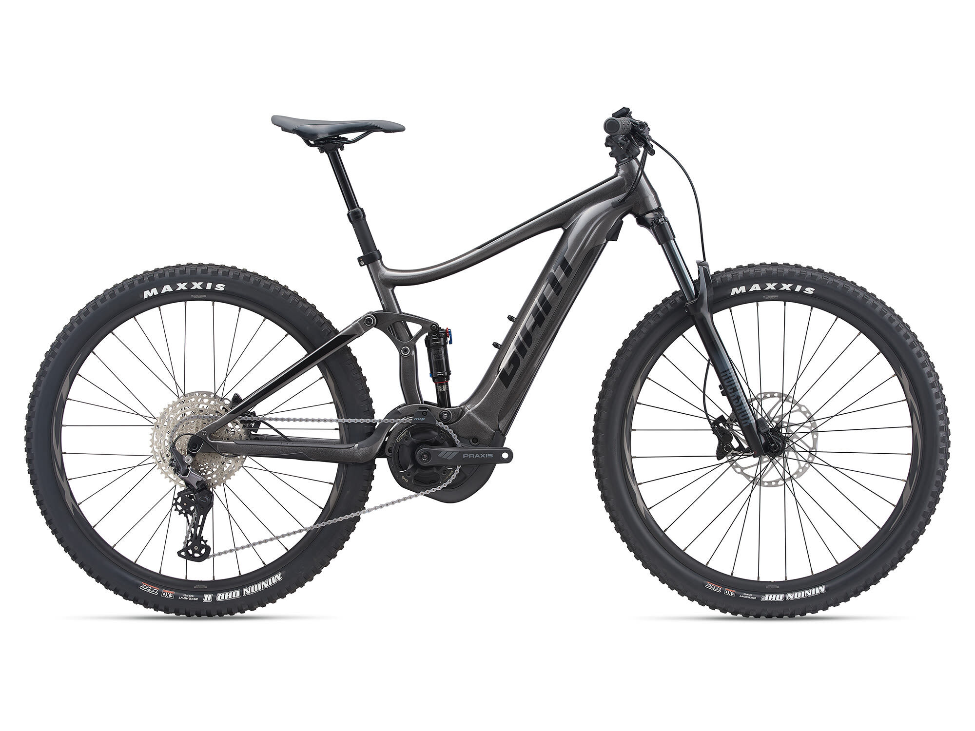 | Style | Experience trail riding like never before. With a powerful motor, smooth suspension and the added stability of 29-inch wheels, the Stance E+ Pro 29 helps you boost the fun factor on challenging terrain.ALUXX SL Aluminium Technology - This High-Performance level, state-of-the-art aluminium material is made predominantly from 6011 alloy and delivers best-in-class strength-to-weight ratios. These framesets also feature unique welding technologies for high-performance ride quality. FlexPoint Suspension Technology - A proven " single-pivot" design that uses the flexing action of the chainstay/seatstay junction to produce a lightweight and durable suspension system with 4.7 inches/120mm of rear travel. E+ System - E+ System combines electric power with human power to produce a smart, natural and powerful E-bike riding experience. It's an integrated group of technologies that includes our RideControl control units, EnergyPak battery systems and SyncDrive motors. For more information, check out the link below. SyncDrive - Revolutionize your ride with an E-bike motor system that adapts to you. Experience natural momentum in motion as SyncDrive technology enhances every moment of your journey, opening new horizons for every rider. Smart Assist - All SyncDrive motors have Smart Assist technology, which adjusts the support to match the rider's needs. By using information from multiple sensors, both rider input and terrain feedback are used to determine the optimal amount of pedaling assistance. SyncDrive is the only e-bike system that utilizes both rider input and terrain feedback. It gives you a smooth, natural riding experience with ample power when you need it, while also conserving power when you don't need as much. Tubeless System - Fewer flat tires. Greater traction. Less rolling resistance and a smoother, faster ride. Giant's Tubeless System makes it easier than ever to experience all these benefits. RideControl Ergo - RideControl Ergo takes your E-bike riding experience to new levels with optimized controls and a clean handlebar layout. The robust buttons are designed to use in all conditions with a comfortable feel and grip. The controls are thoughtfully designed with new LED lighting that shows your battery level and lets you switch between five support modes (Power, Sport, Active, Basic, Eco). It's also compatible with the new RideDash EVO, an integrated display that mounts on the handlebar/stem area and shows important ride date such as speed, distance and navigation. Energypak - Giant's latest EnergyPak battery systems feature streamlined designs that are integrated with the E-bike for a sleek and modern profile. Giant E-bikes offer several different EnergyPak options including the EnergyPak Smart and EnergyPak. Each one is designed to optimize the E-bike experience for a specific style of riding. Specifications:Motor Giant SyncDrive Pro, 80NmController Giant RideControl Ergo Display Battery Giant EnergyPak Smart 625, 36V 17.3Ah integrated Lithium-Ion Sizes S, M, L, XL Colours Gloss Metallic Black Frame ALUXX SL-grade aluminium, 120mm FlexPoint suspension system Fork RockShox Recon Silver RL,130mm travel, Lock-out, Tapered Steerer,15x110mm Boost, MaxleLite, e-MTB optimised Shock RockShox Monarch RT, High Volume, 184x44mm, custom tuned Handlebar Giant Connect TR Riser 31.8x780mm Stem Giant Contact Seatpost Giant Contact Switch, dropper, 30,9mm (S:100/M:125/L:150/XL:170) Saddle Giant Romero Trail Pedals PEDALS NOT SUPPLIED Shifters Shimano Deore 12-speed I-spec EV Front Derailleur MRP 1X custom "V3" co-moulded TR chain guide Rear Derailleur Shimano Deore 12-speed Brakes Shimano BR-MT420, 4-piston, hydraulic disc, 203mm Brake Levers Shimano Deore BL-M4100 I-spec EV Cassette Shimano CS-M6100-12, 10-51T, 12-speed Chain KMC e.12 Turbo, EcoProteq, e-bike optimised Crankset Praxis Wavetm 36T Cold Forged 4130 premium steel Praxis e-Cadet+ custom forged crankarm set (Q-factor=168, S:160, M/L:165, XL:170) Bottom Bracket Rims Giant XCT 29 Tubeless Ready 25mm e-bike optimised Hubs Shimano MT410 Boost, Center-Lock, [F] 110x15 [R] 148x12mm Micro-Spline Drive Body Thru-axle Spokes Sapim E-Lite [R] Race [F], e-bike optimised Tyres Maxxis Minion DHF 29X2.5" 60TPI Foldable, TLR EXO [F]Maxxis Minion DHR II 29X2.40 60TPI Foldable TLR EXO [R] Extras Giant EnergyPak Smart 6A charger Tubeless kit (liquid, valves, levers, manual, tool) |