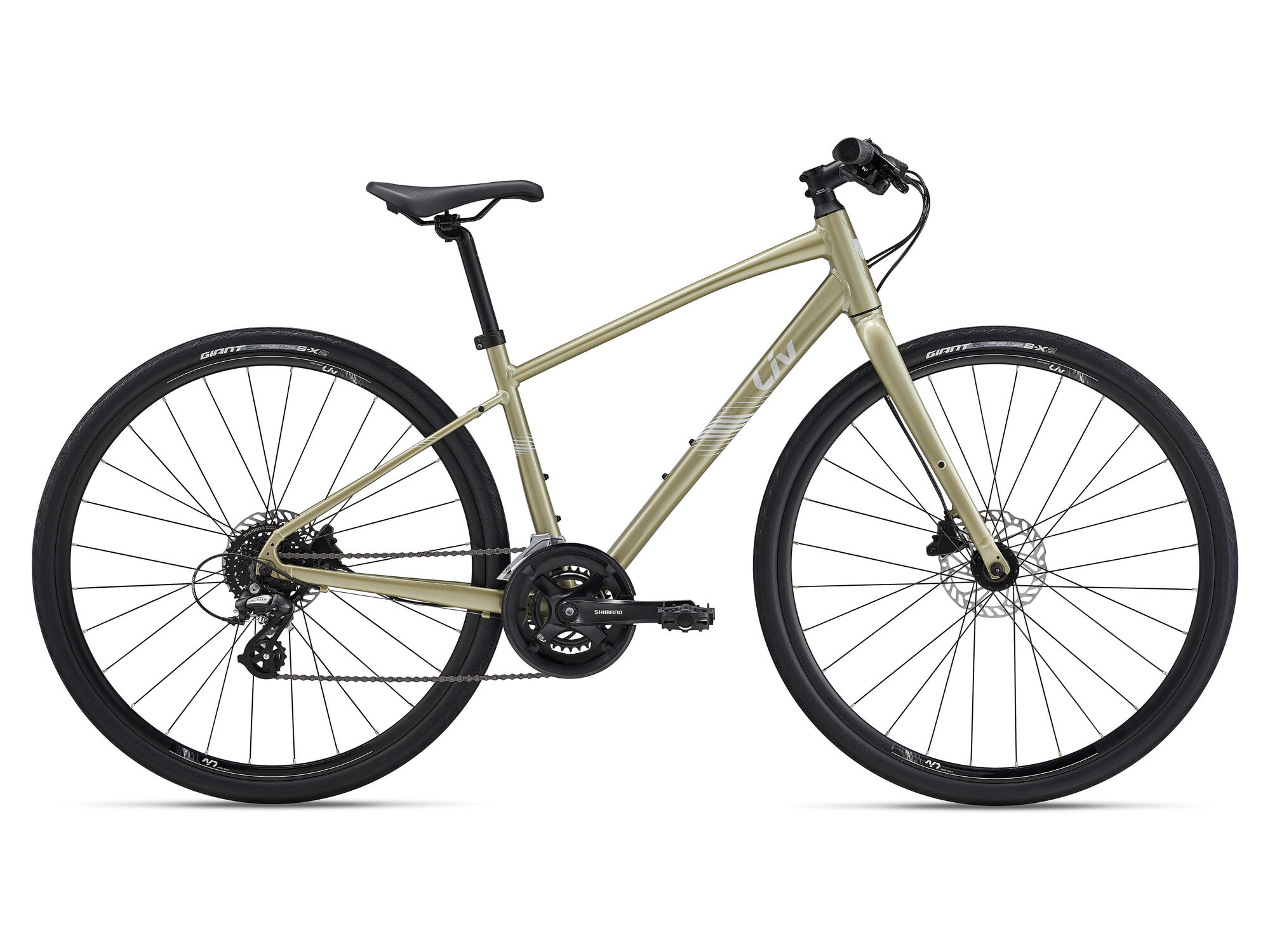 | Style | The Alight Disc is redesigned with a fast and fresh look, and is equipped with touchpoints to maximise comfort, accessory mounts, and dependable components, making this a versatile flat-bar road bike perfect for commuting and keeping an active lifestyle.ALUXX Aluminium Technology - This Performance level frame material features 6061 alloy with single-butted tubes to produce strong, lightweight framesets for a variety of different bikes and riding styles.D-Fuse Seatpost - The proprietary " D" shaped composite seatpost damps vibration, resulting in a smooth, compliant ride. Specifications:Sizes XS, S, M, LColours Gloss Bay LeafFrame ALUXX-grade aluminium, discFork ALUXX-grade aluminium, discShock Handlebar Giant Sport, flat, 31.8mmGrips Liv ErgoContactStem Giant Sport 31.8mm Seatpost Giant D-Fuse, alloySaddle Liv ErgoMaxPedals Platform pedalShifters Shimano Altus, 2x8Front Derailleur Shimano TourneyRear Derailleur Shimano AltusBrakes Tektro HD-R280, hydraulic discs, 160mm rotors Brake Levers Tektro hydraulicCassette Shimano CS-HG318, 11x34Chain KMC X8.3Crankset Shimano TY-501, 30/46 Bottom Bracket cartridgeRims Giant GX Disc wheelsetHubs Giant alloy, QRSpokes Stainless steelTyres Giant S-X2, puncture protect, 700x38cExtras Max Tyre Clearance 42mm |